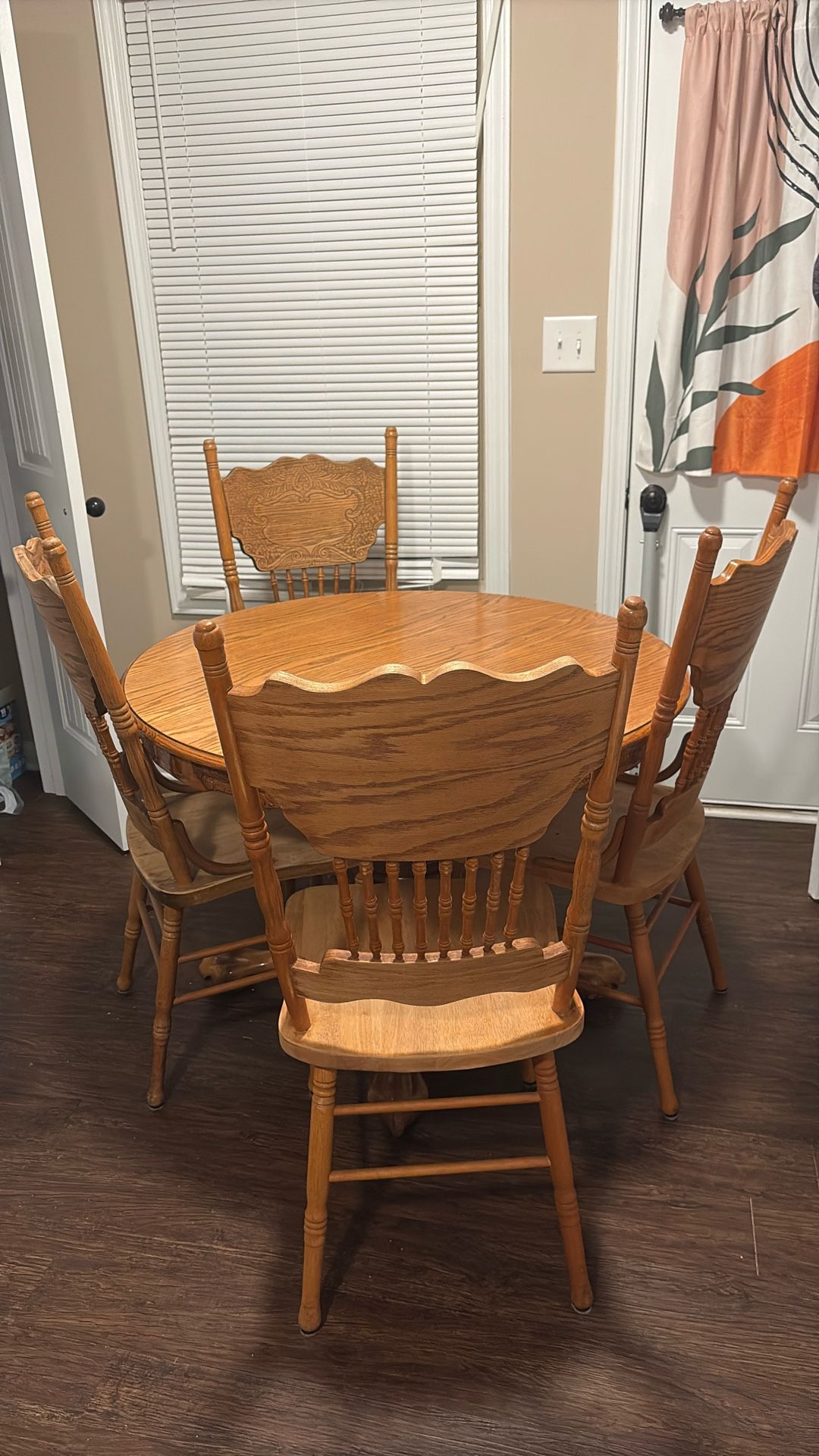 Solid Oak Table With Leaf Add On And Chairs