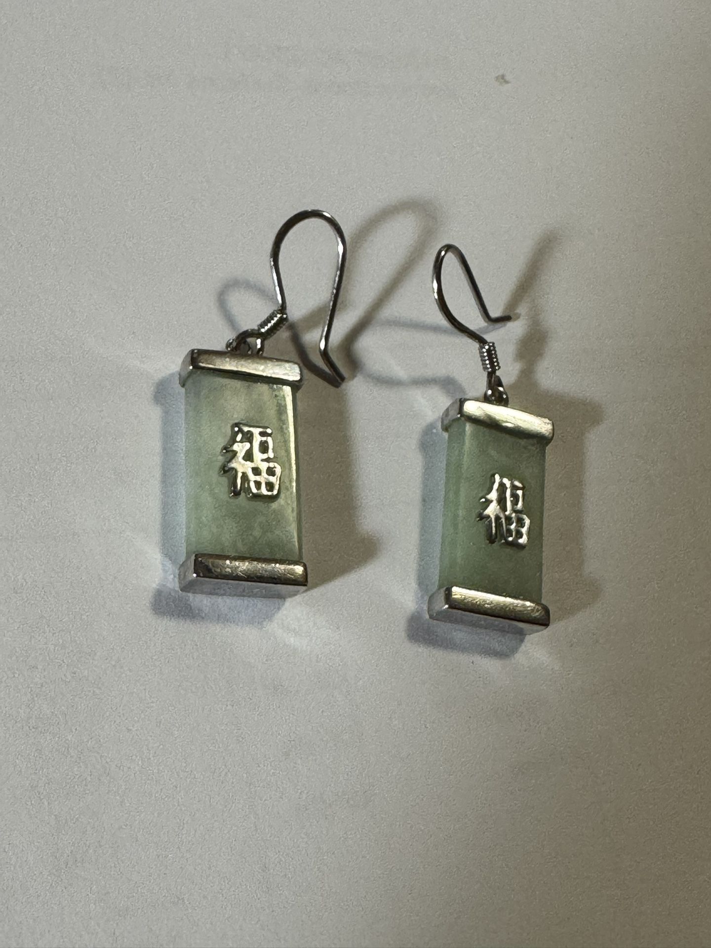 925 Sterling Jade Drop Earrings (福 “Good Fortune”) – 4.5g – $35
