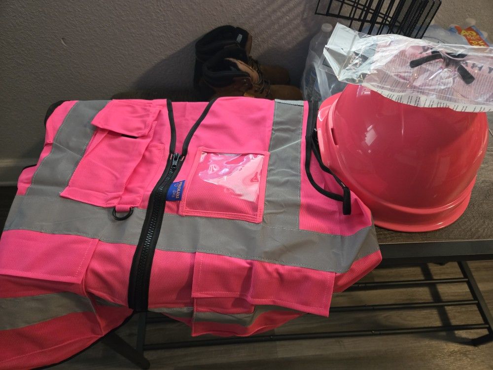BRAND NEW, never worn. Vest, safety glasses and hard hat