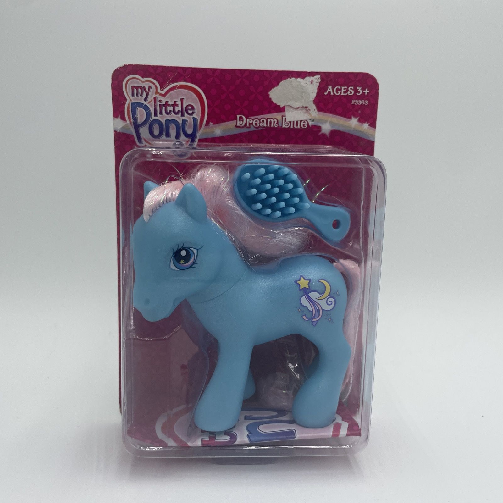 My Little Pony G3 Dream Blue Hasbro Toy Figure w/ Brush. Dream Blue Hasbro is brand new on her card! Her card has scuffs, dents, and creases from storage. Edges are peeling. Pony is still sealed to her card. Please see the pictures!