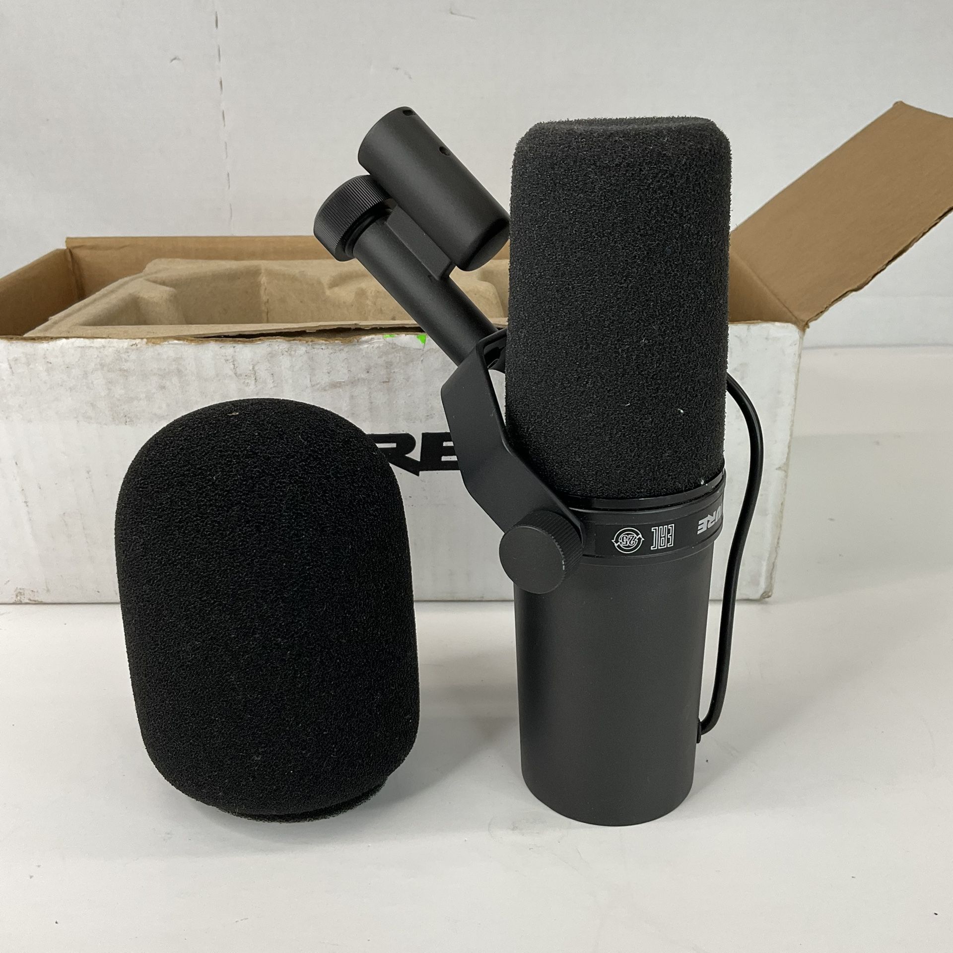 Excellent condition! Comes with an extra A7WS windscreen. Whether it's big-time broadcasting, professional podcasts or critical studio recordings, this legendary dynamic microphone delivers smooth, warm vocals every time. The SM7B captures and enhances the finer details of the human voice while blocking out all the distractions. An audio icon. The SM7B is a professional dynamic microphone that operates best with preamps that provide +60d8 of gain. Please ensure your audio interface can provide sufficient gain or you may find our SM7dB is a better option with a built-in preamp.