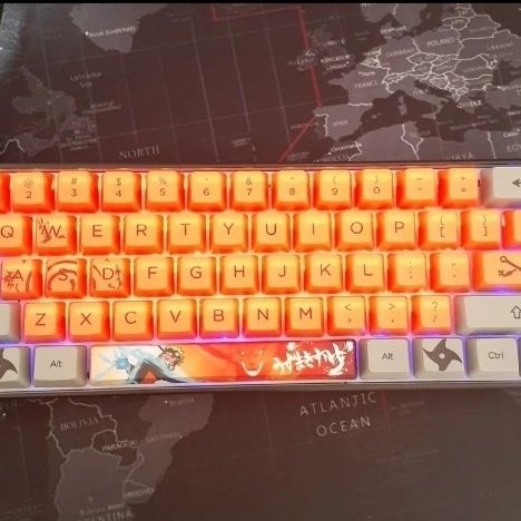 Its brand new its costom built it's a 60% keyboard with extremely rare keycaps only 20 of these keycaps were made. I have the boxes for the keyboard and keycaps and the rest of the keycaps for a 100%keyboard it also has a software to customize the lighting its black switched linear perfect for naruto fanboys or fangirls