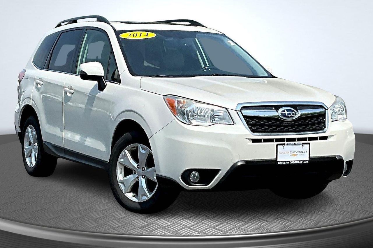 The Napleton Auto Group promotes a no pressure buying experience that puts the customer in charge of the buying process, and for over 80 years, the Napleton family has made sure that absolutely nothing is more important than our commitment to your satisfaction. Our staff members are professional in every sense of the word, and receive regular training, including factory certification, so they are truly knowledgeable about the vehicles we offer. We want every customer's experience to be as timely, comfortable and ultimately as satisfying as it possible can be. You'll see it in every department of every Napleton Auto Group dealership. We hope you'll join the thousands of other satisfied customers that buy and service their vehicles the Napleton way.<b></b><b></b> This 2014 Subaru Forester 2.5i Touring offered in Satin White Pearl will make a great addition to your family or business!<u>Be sure to take note of all this vehicle has to offer:</u><h4 class="vc_build_package_name">Base Model</h4><ul class="vc_build_package_item_list"></ul><h4 class="vc_build_feature_name">Convenience</h4><ul class="vc_build_feature_item_list"><li> Cruise control with steering wheel mounted controls. Set it and forget it. Road trips used to be stressful, until cruise control set the pace. Simply set the desired speed using the steering wheel mounted controls and it will maintain that speed without driver intervention. This can help minimize driver fatigue and improve overall fuel economy. Resting your right foot is right at your fingertips thanks to cruise control with steering wheel mounted controls.</li><li> Power open and close liftgate - On-demand access. When your arms are full of cargo, the last thing you want to do is set it all down just to open the liftgate, then pick it all back up to load it in. By remotely opening and closing, power liftgate lets you skip straight to the loading. It also eliminates the awkward stretch to reach up for the liftgate to close it. Load and go with power open and close liftgate.</li></ul><h4 class="vc_build_feature_name">Safety and Security</h4><ul class="vc_build_feature_item_list"><li> Rear camera - Watching your back! The rear camera helps you see obstacles and hazards you otherwise couldn't by showing enhanced images of what is behind you. The rear camera is an extra set of eyes that's both convenient and safe.</li><li> Brake assist - Stop right there. Something jumps out into the middle of the road and you need to stop now! With brake assist, you will. It uses the speed of the brake pedal's travel to sense panic braking, then applies all available power to boost your stopping power. Brake assist can stop the accident before it is one.</li></ul><h4 class="vc_build_feature_name">Technology and Telematics</h4><ul class="vc_build_feature_item_list"><li> Selective Internet access - a more focused delivery. Selective internet access allows you to tailor the features for your feed, such as sports scores, local news, or current weather. When it comes to getting what you want, selective internet access is a net gain.</li></ul><u>Other notable features:</u> <b>Napleton Saint Charles Chevrolet </b> is proud to serve customers in communities throughout the Chicagoland area. Give us a call at <b>630-296-9147</b> or stop by to test drive your new car, truck, or SUV today! <b>2015 E Main St St. Charles IL 60174</b>