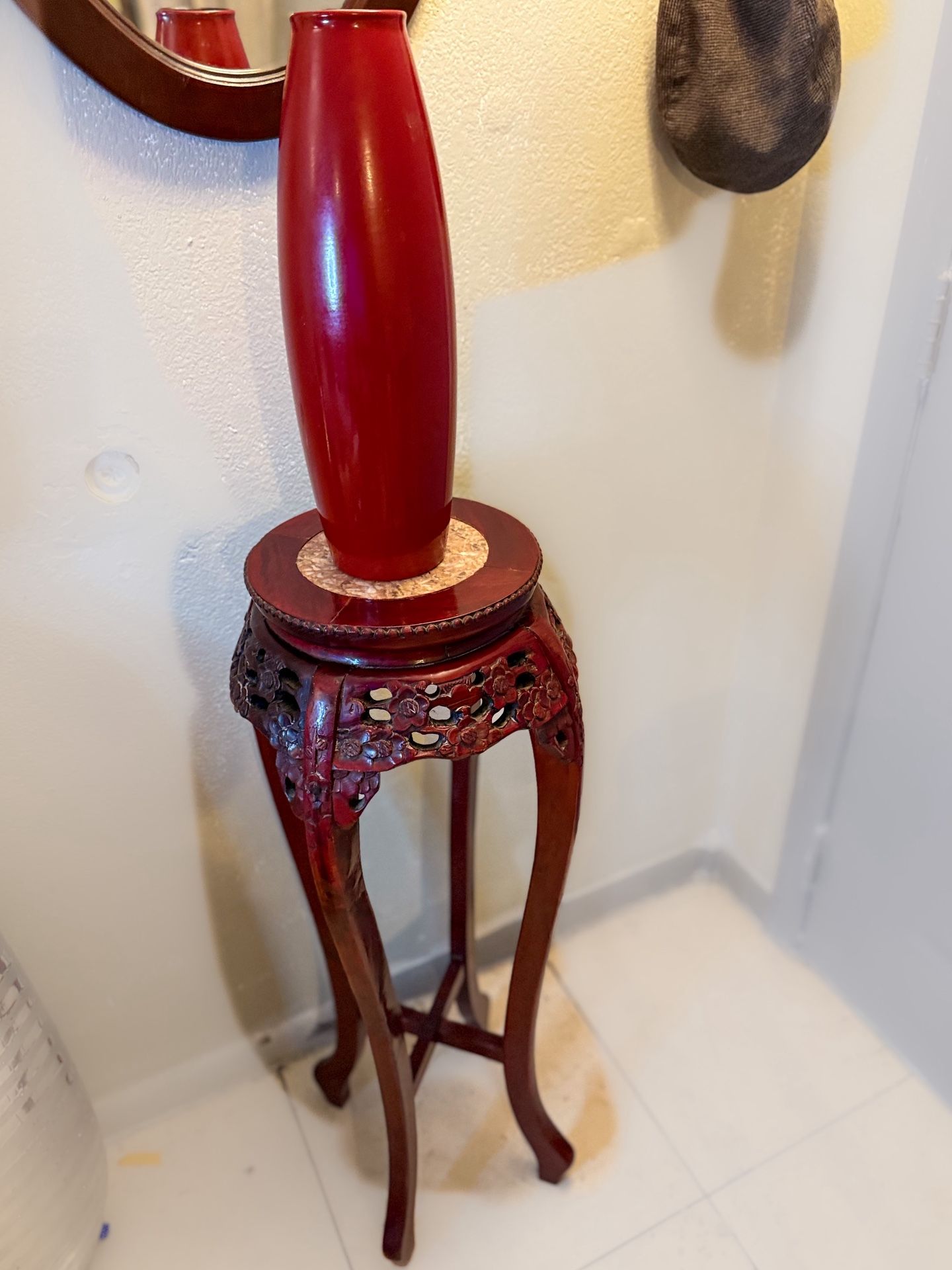 Msrp: $1,200 12.5” x 12.5” x 36” Gorgeous Chinese Antique stand that can be used from anything to plant stand to a pedestal to show off your fave vase! Its intricate carving design is testament of the fine workmanship we can only see in Antiques 100+ years old! Kept in Great condition ! Pick up in Medley, or delivery available