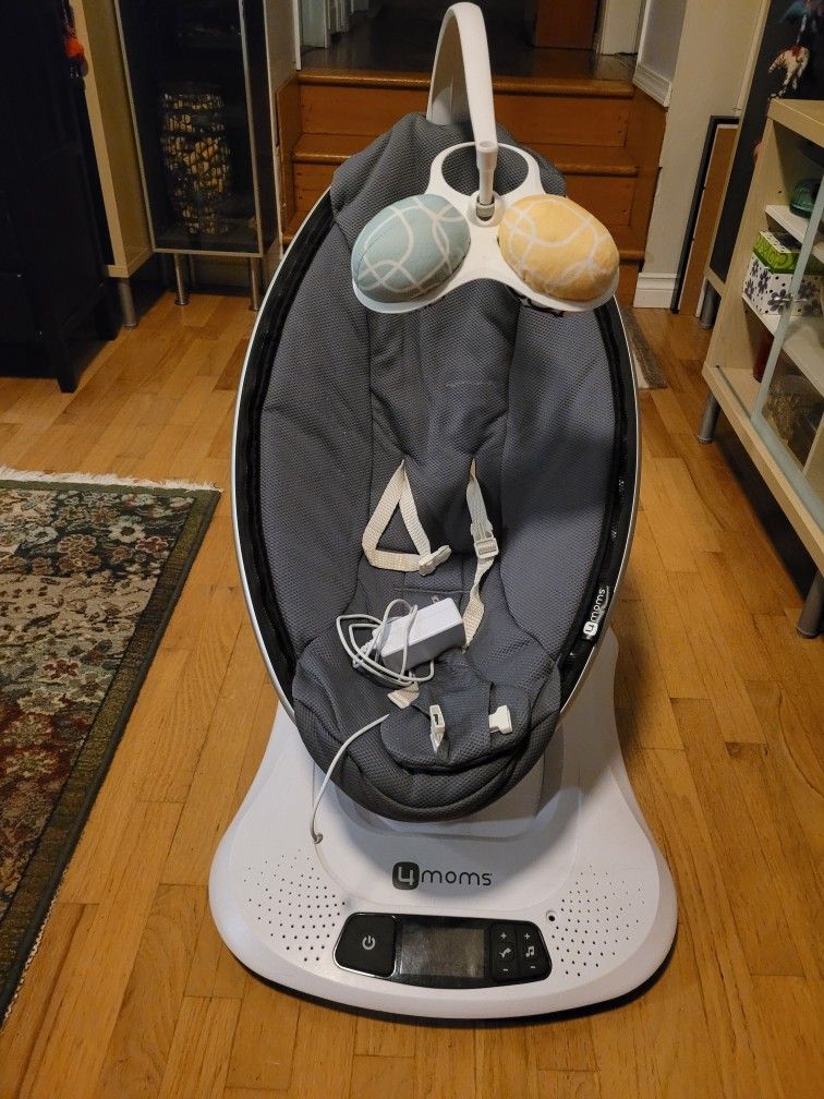 4moms Mamaroo. Lightly used. Normal wear. Washed and clean. Missing 1 ball, but they were a bit silly to begin with. We hung different, more entertaining toys from it instead. Bluetooth app capable. $60 or best offer. Located in Kent easthill.