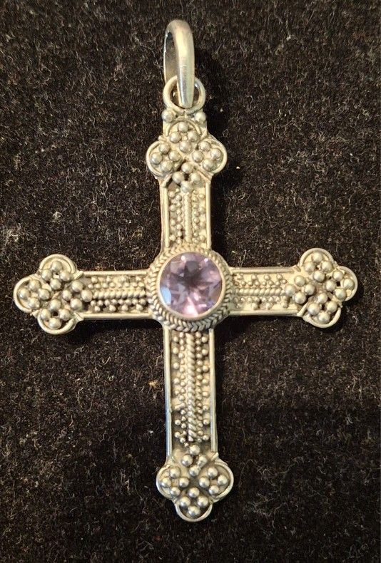 Sterling Silver Cross Pendant With Stone