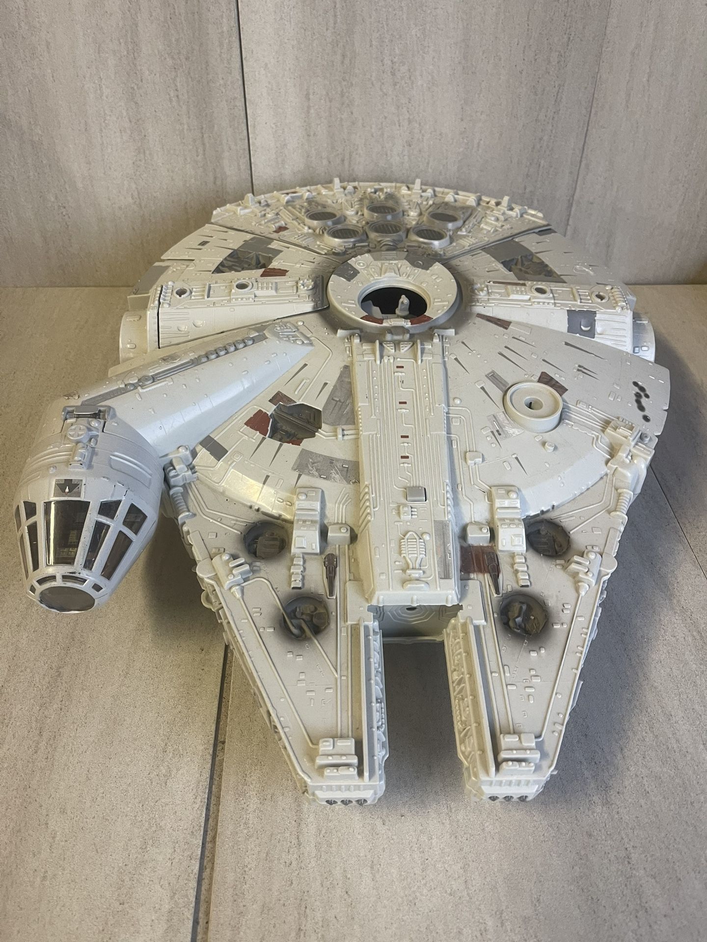Excellent opportunity for a collector or Star Wars fan. This is a large playset version of the Millennium Falcon, featuring a detailed interior with play-areas, bridge, and figures (as shown in photos). The exterior shell shows wear from age/use (see photos), but the structure remains intact and offers great display or play potential. Some parts may be missing (please review the images closely).