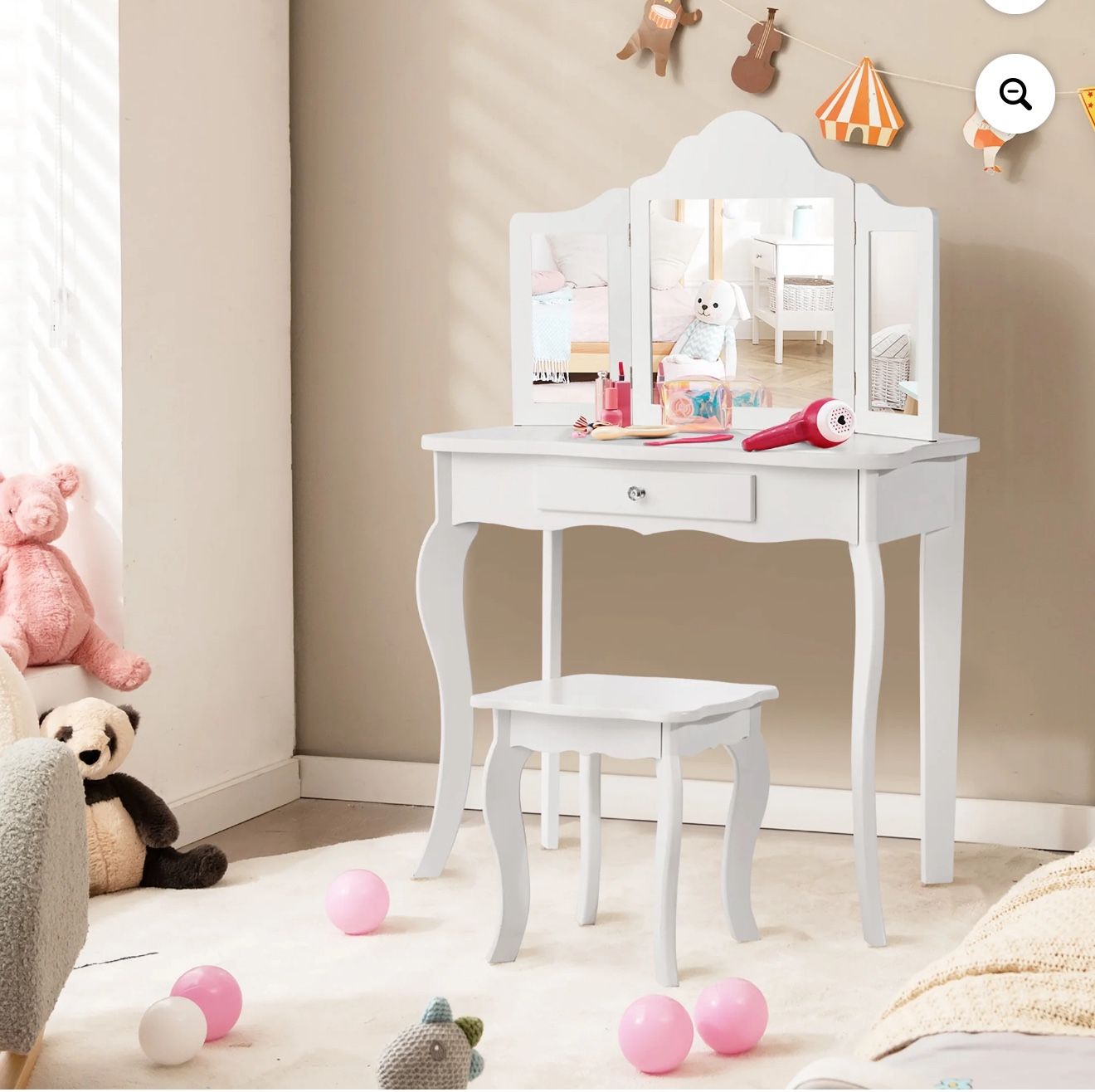 Costway Vanity Table Set Makeup Dressing Table Stool Mirror White