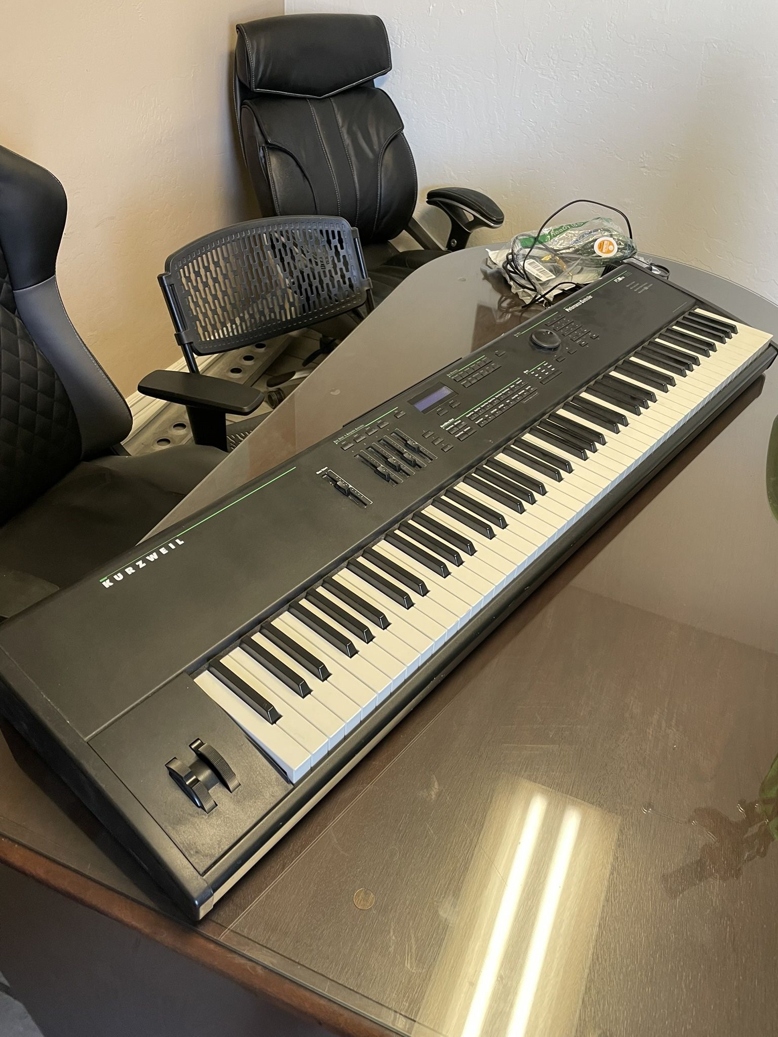 Kurzweil 88-key keyboard. Works great! Needs headphones or external speaker (not included).