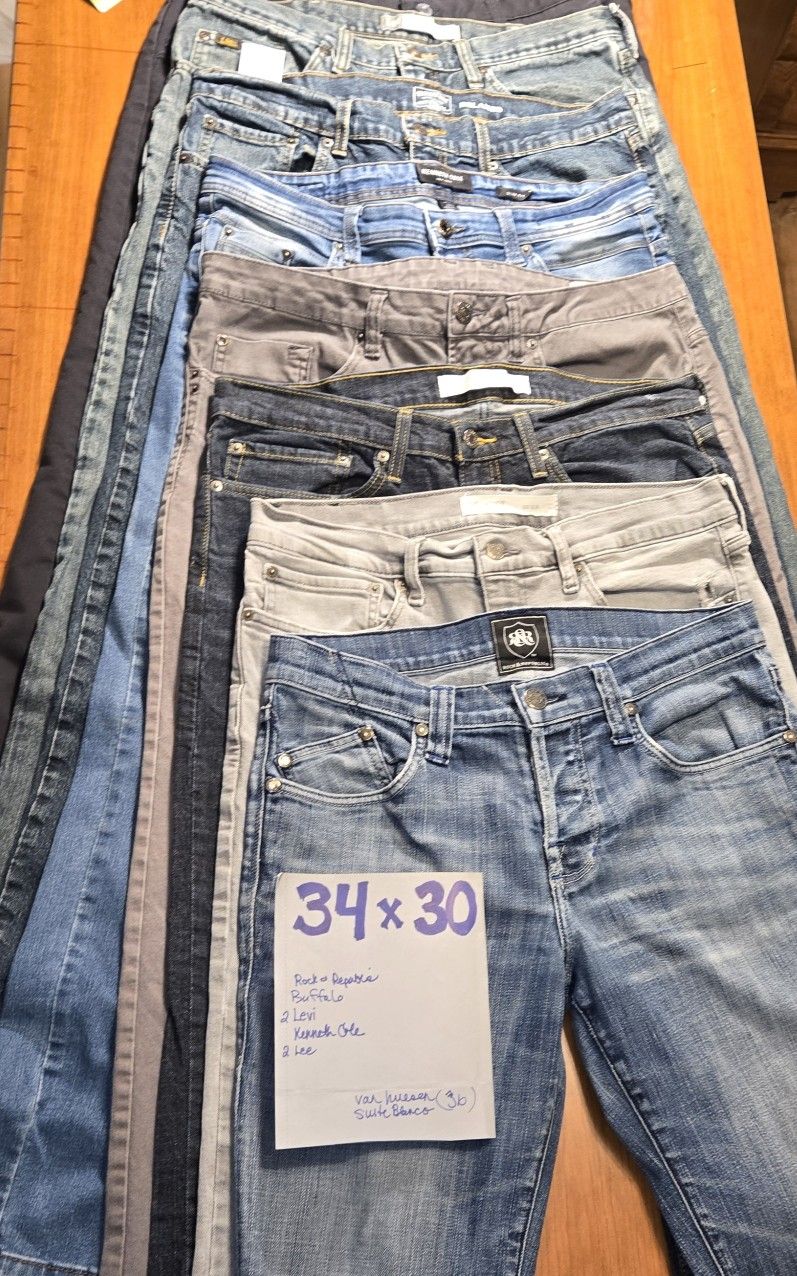 34×30 Men's Denim Jeans, Levi's, Rock Republic, Buffalo, Kenneth Cole, Lee,...