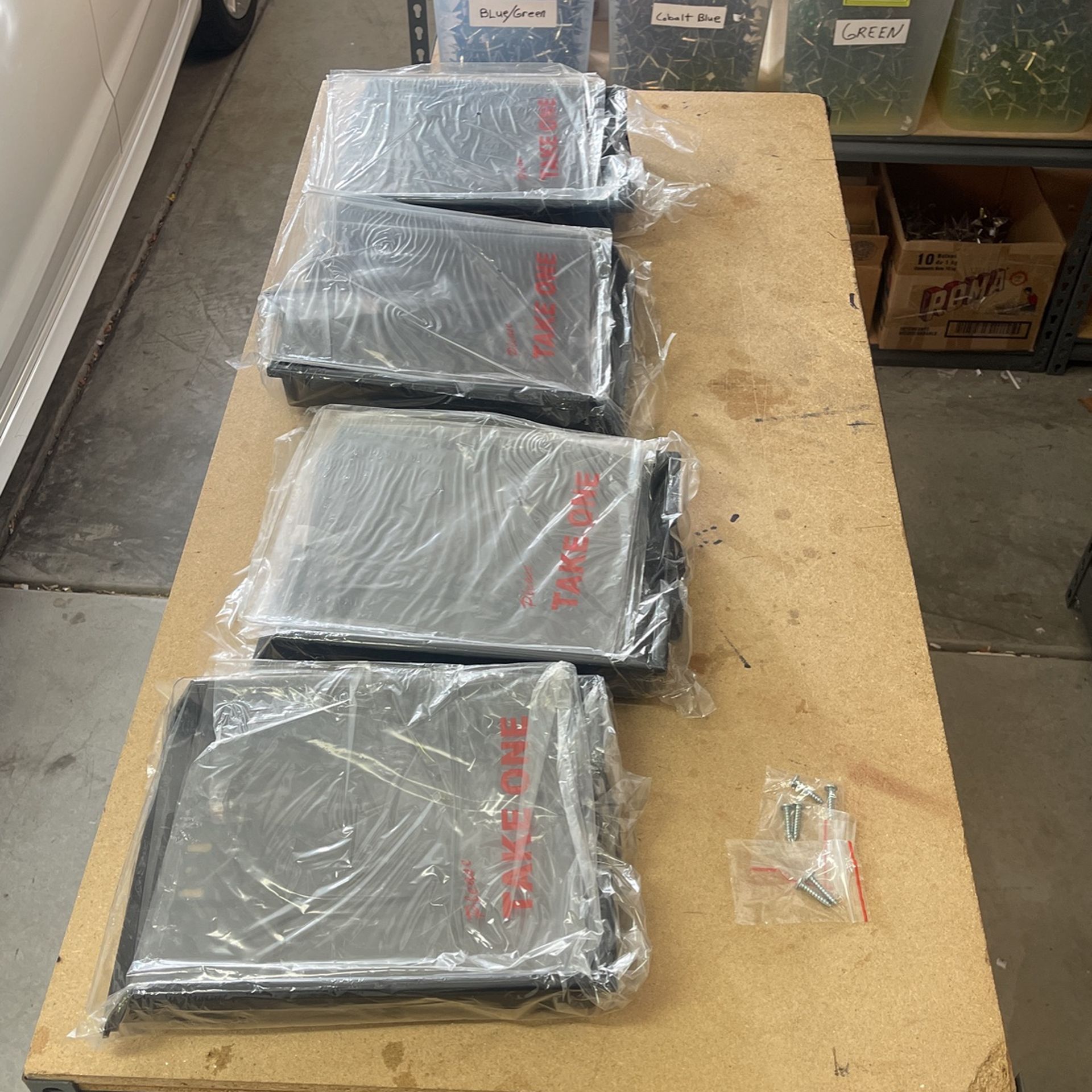 4 brand new real estate flyer boxes still in the packaging $35 price is for All 4 items