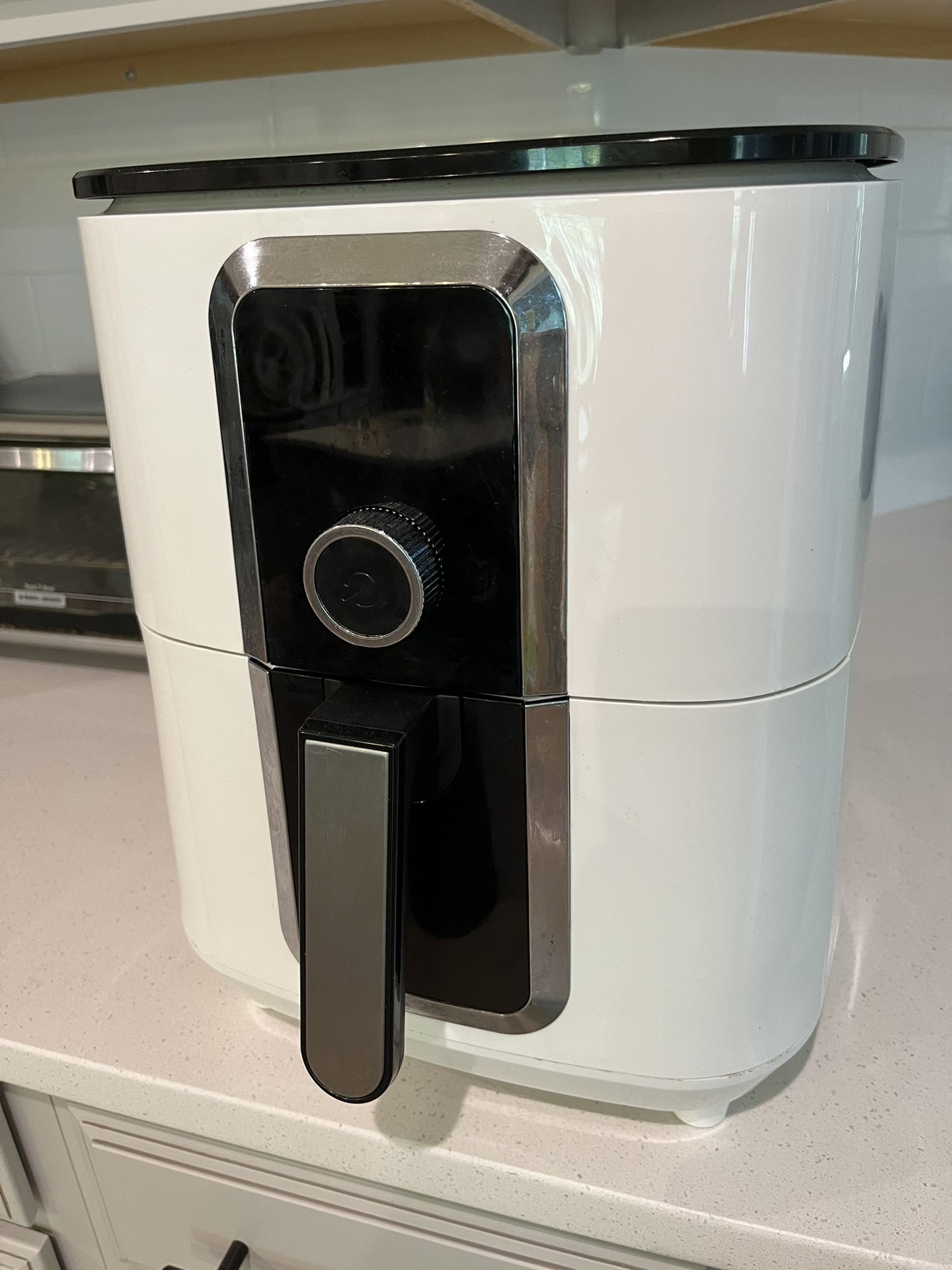 This is a fairly large air fryer in good condition. Height: 15in Width: 11in