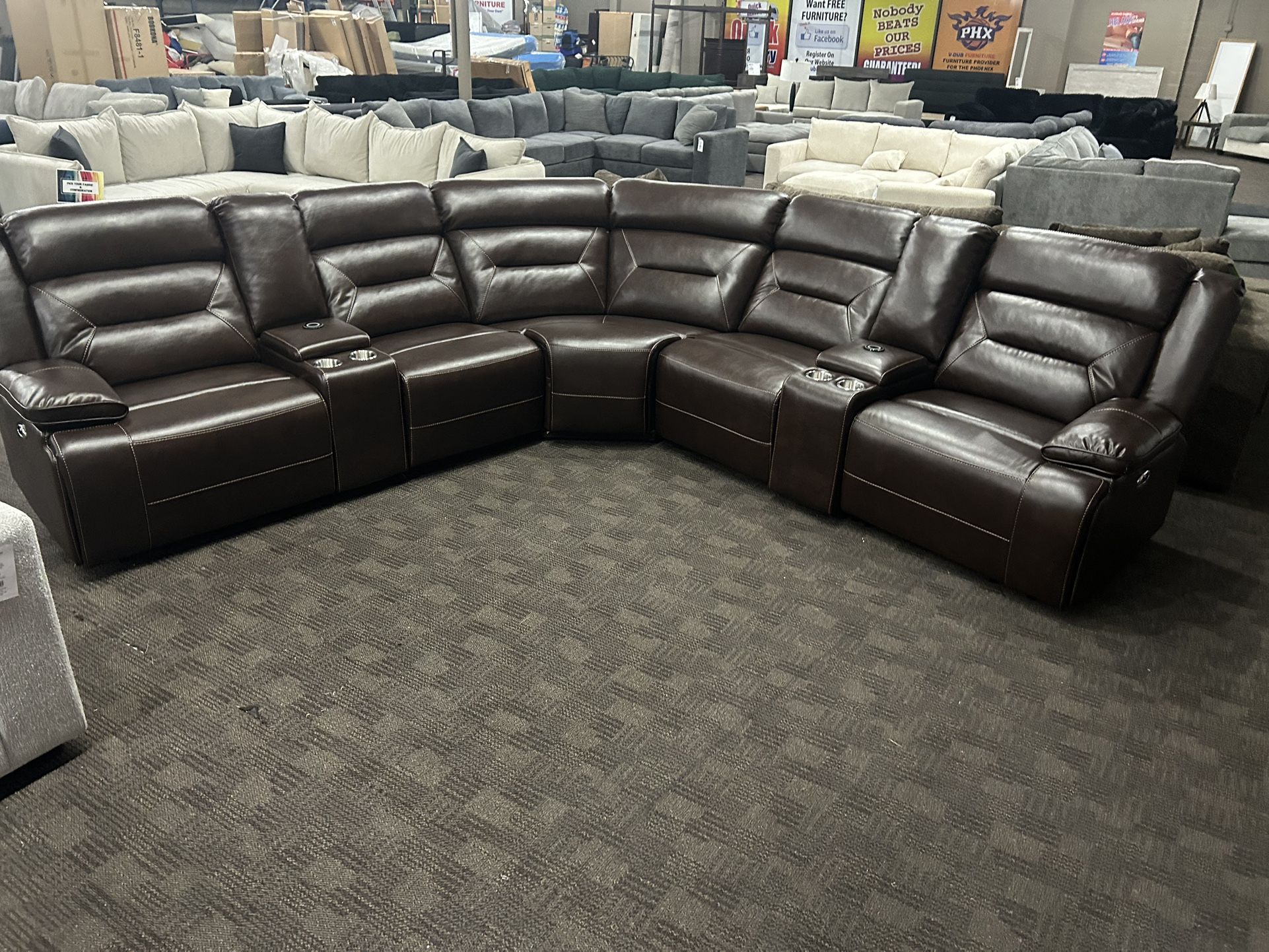 Brand new sectional. ask about other colors and configurations. 4 cupholders, 2 consoles, usb ports and 2 charging ports. Delivery service available 🚚 Zero down, interest free financing. no credit check! Hablamos español 🇲🇽