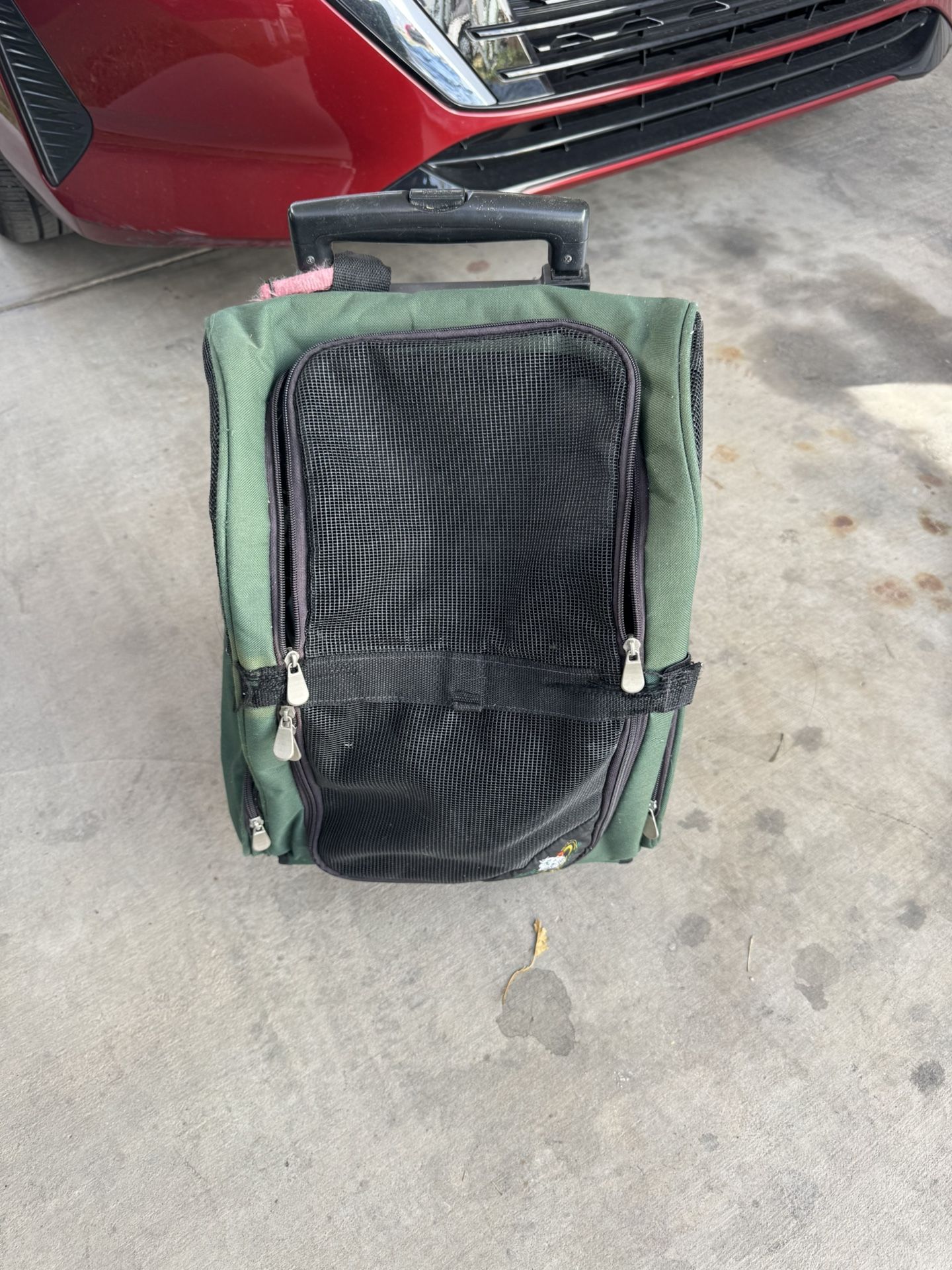 Good condition It’s used as a backpack or stroller to carry a small puppy or kitten or adult cat only