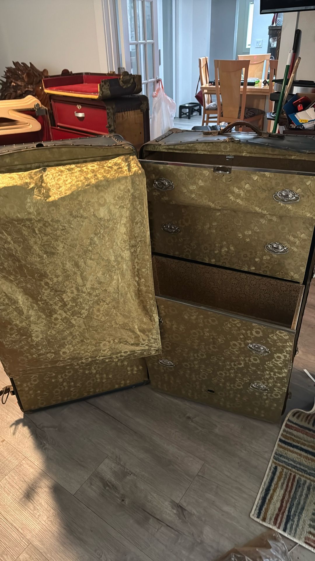 This antique steamer trunk was made in Portland, Oregon. It is in reasonably good shape for how old it is. It’s a great piece to have.