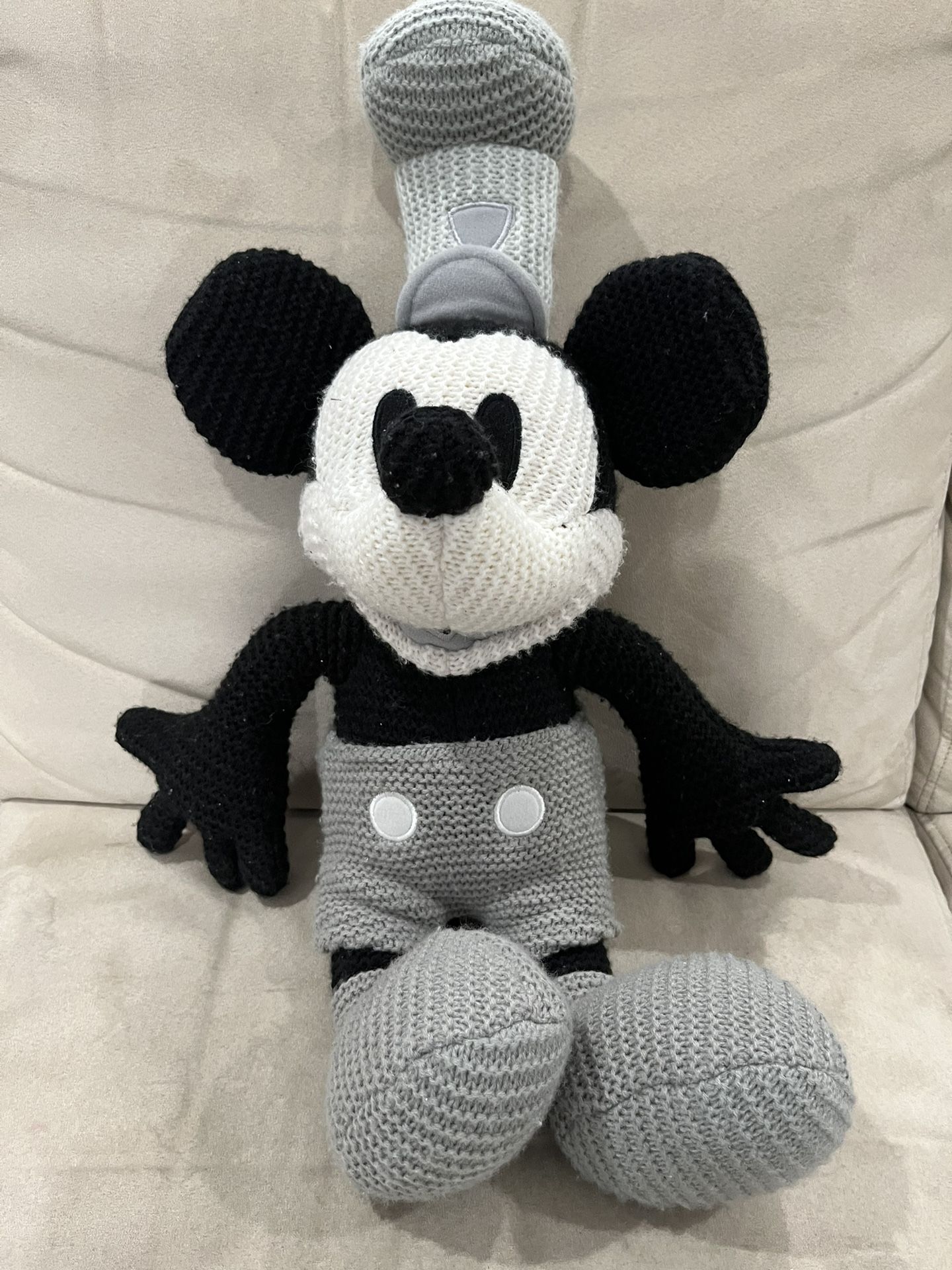 Very Rare Disney Parks Plush Steamboat Willie Mickey Mouse 20” Black Grey White Knit Plush Woven