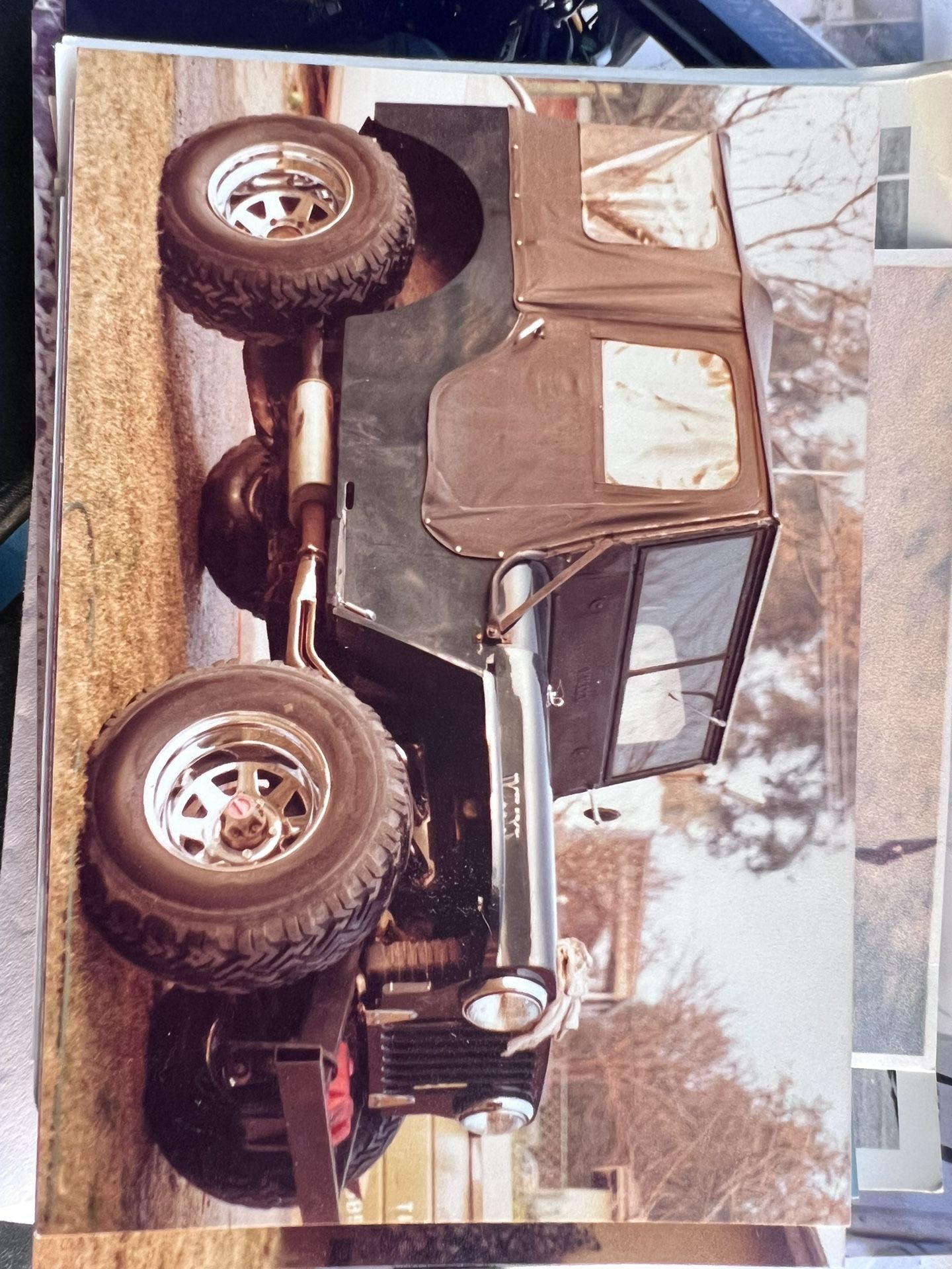These are photos of my grandfathers flat fender jeep. It had a 350 in it when it was sold, the rear end was custom build with the normal 5x5.5 bolt with a Chevy 12 bolt rear end. It had a fiberglass front end. Warren over drive, munsie 4speed, Chevy steering console. The frame has also been welded and fixed before and would be a thing that is distinct to this jeep. This jeep was sold in the Mira loma area to a gentleman in San Fernando valley, he had a Jeep wagoner that was red(seen in photos). This was my grandfathers Jeep that he sold and it would be a dream of mine to find, if anyone had any leads or connections to possibly this Jeep please reach out.