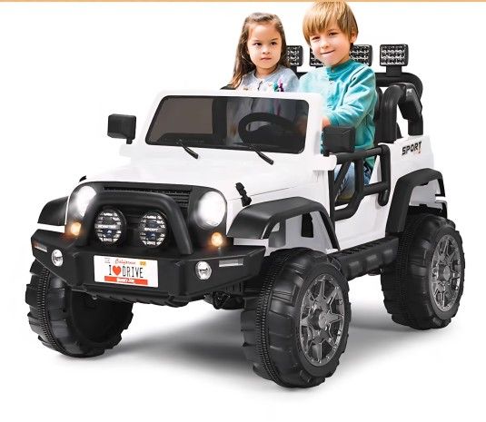 Only riden twice by daughter in drive way. Been siting in garage for a year. HONEY JOY 2 Seat Ride On jeep 12V Off-Road Ride On Car with Remote Control, Slow Start, Spring Suspension, LED Lights, Music, 3 Speeds, Battery Powered Electric Vehicle. lockable magnetic double doors, forward and backward functions and the 3-level speed adjustment. Can support up to 110lbs. Perfect for the desert! Keywords jeep, can-am, Polaris, rzr, dirtbike, quad, atv, desert,