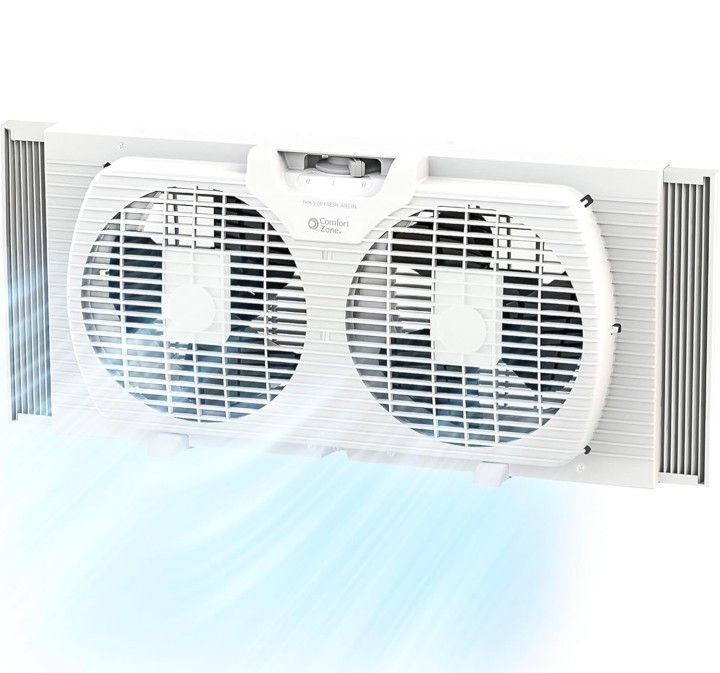 New Open Box, Comfort Zone Twin Window Fan with Reversible Control, 2 Speed, Auto Locking Expanders.