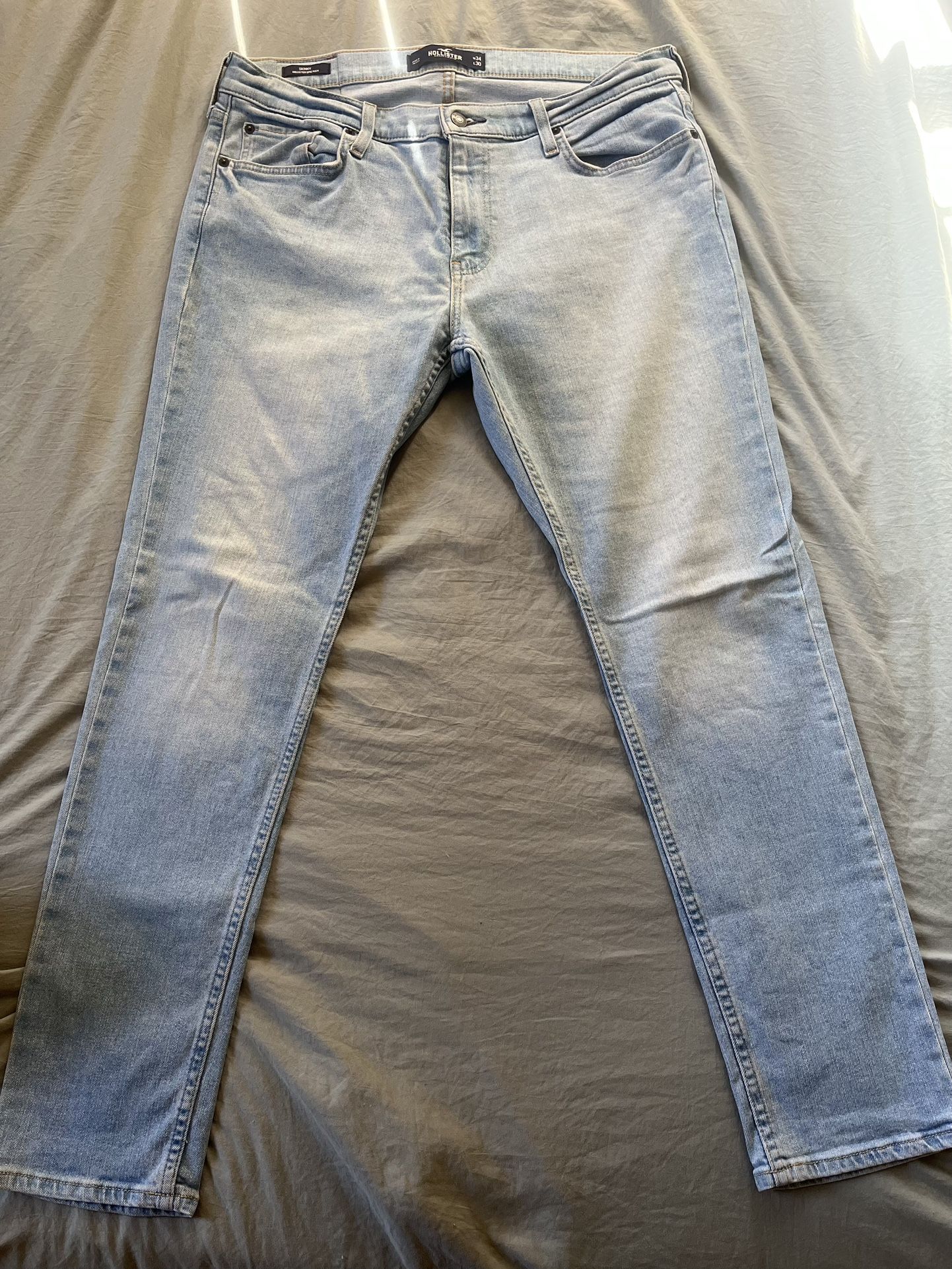 Clean pair of Hollister men’s skinny fit jeans in a light wash. Classic slim/skinny cut with a comfortable stretch feel — easy everyday pair for casual or going-out looks. ✔️ Brand: Hollister ✔️ Men’s skinny fit ✔️ Light wash blue denim ✔️ Soft, broken-in feel ✔️ No rips or holes ✔️ Gently used – great condition Size is shown on the tag (see photo for exact size). Nice fitted look that still feels comfortable — priced to sell. Local pickup available (Whittier / LA area).