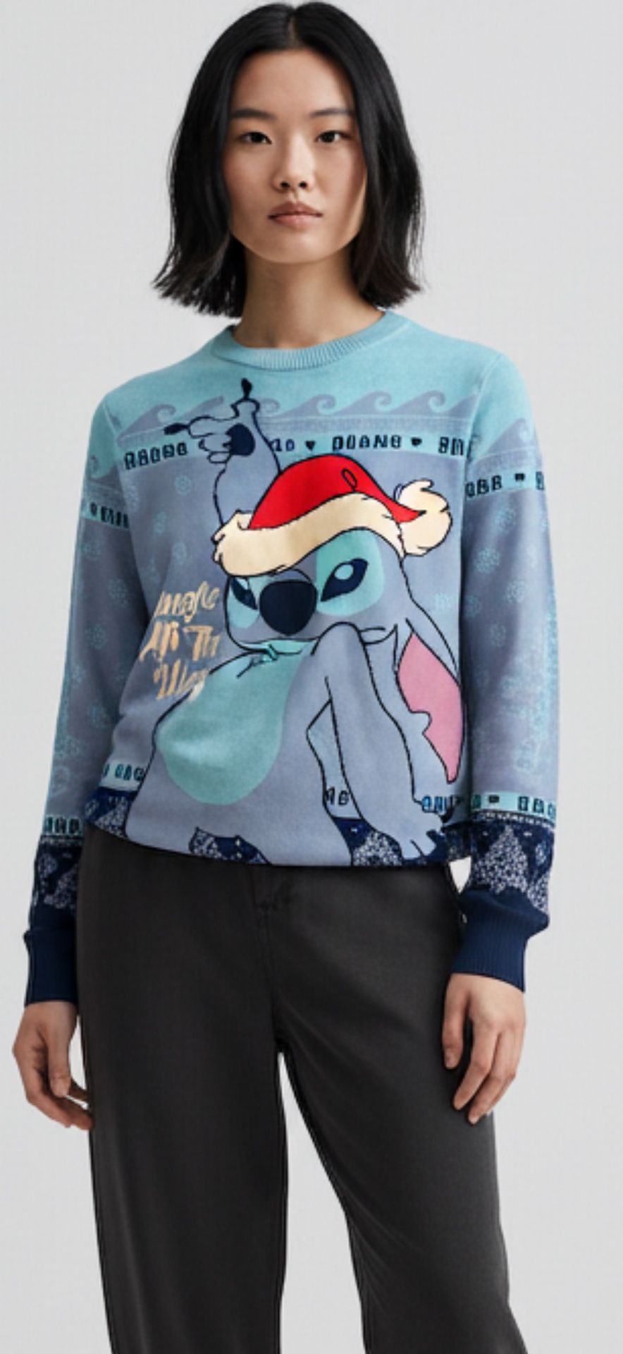 Disney Stitch “Ugly Christmas” Sweater – Ohana / Jingle All The Way – Blue – Crewneck