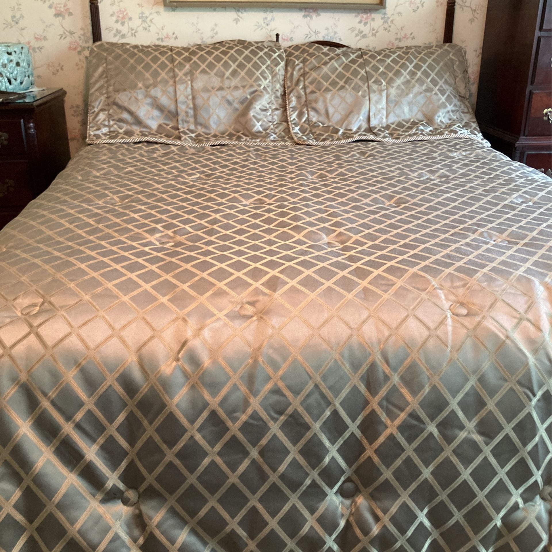King Reversible Comforter with tufted buttons on both sides of comforter. Pristine condition. 90+”x96”