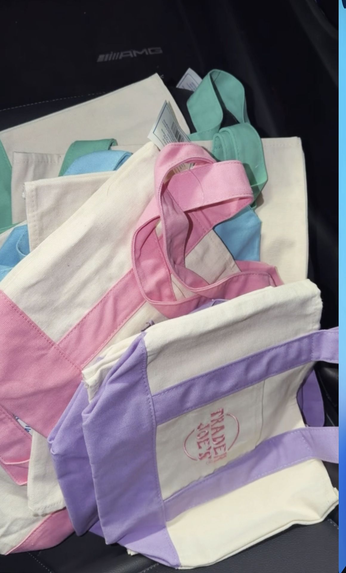 Trader Joe’s tote spring 2026 pastel bags $15 each Purple Blue Green Pink Serious inquiries only