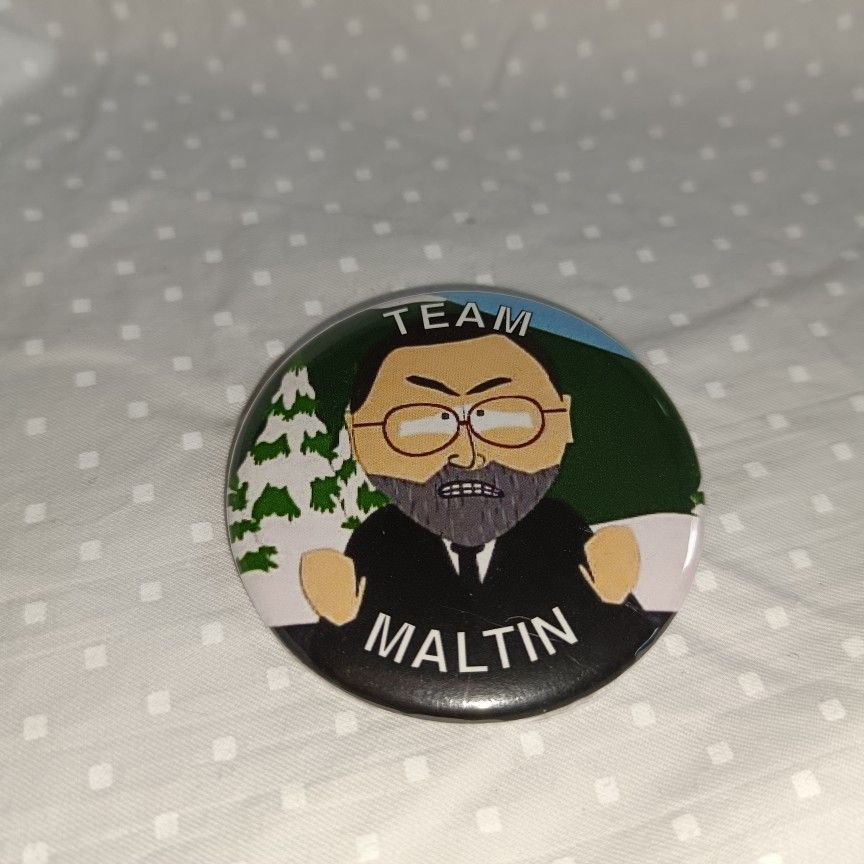 RARE Team Maltin South Park Pinback Button – Mecha-Streisand Episode Collectible Description: Rare and quirky South Park collectible! This approximately 2" pinback button features Leonard Maltin as his heroic animated self from the classic Season 1 episode “Mecha-Streisand.” A fun deep-cut reference for South Park fans and collectors of unique pop culture memorabilia. ✔️ Great conversation piece ✔️ Vintage-style button ✔️ Perfect for South Park enthusiasts or pin collectors Condition: Excellent – bright colors, no noticeable wear. 📌 Add some South Park nostalgia to your collection with this Team Maltin pin! Category: Men > Accessories > Pins & Brooches Tags/Hashtags: #SouthPark #LeonardMaltin #MechaStreisand #TeamMaltin #CartoonCollectible #90sCartoon #SouthParkFans #PinCollectors #deepcuts