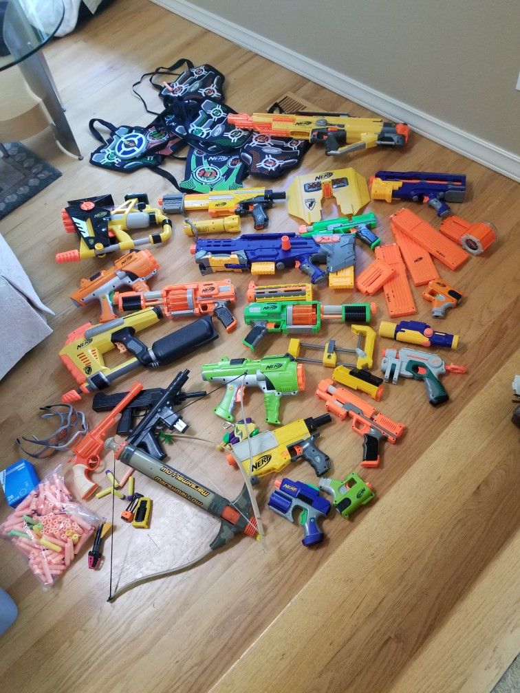Nerf guns galore! Bullets, cartridges, body armour