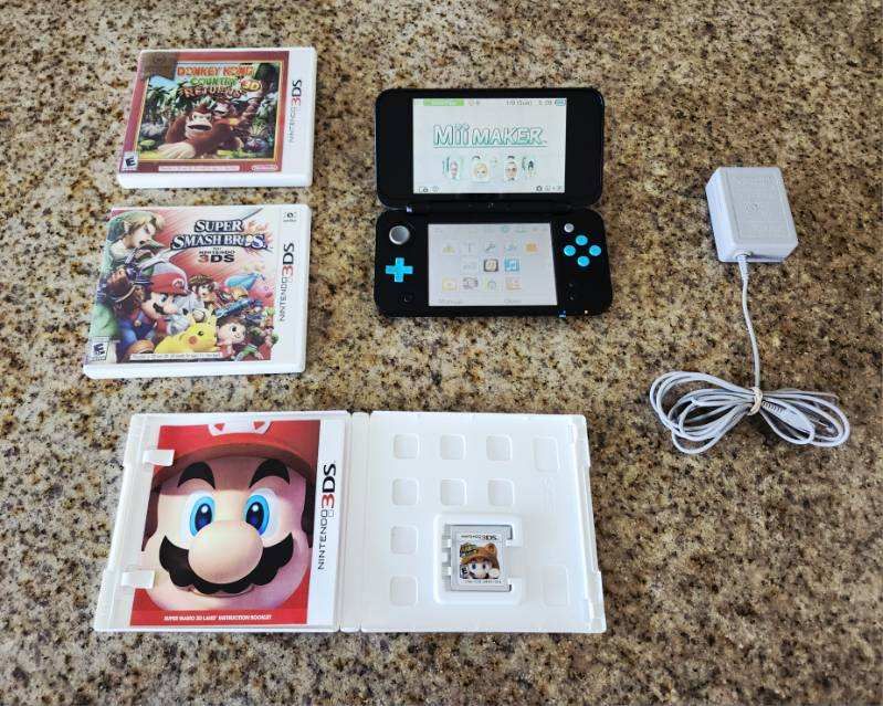 Selling this Excellent condition Nintendo 2DS XL with perfect screens / speakers/ buttons & triggers. Everything works like New as it should. Will come with Charger/ 128gig Sd Card and 3 games in box. Super Mario 3D Land Super Smash Bros 3D Donkey kong 3D Wanting $325 Thanks for looking. Trade for Nintendo Nes SNES N64 Gamecube Sega Genesis Dreamcast Sega CD master system Switch Playstation ps1 Ps2 Ps3 Ps4 ps5 Xbox live Conkers Bad fur day Mario Kart Smash bros Pokemon Super Nintendo N64 007 Goldeneye Smash bros Banjo Kazooie Diddy Kong Racing Donkey kong Tony Hawk Pro Skater Zelda Ocarina of Time StarFox Perfect Dark Majoras mask Donkey Kong Country Dk64 Turbo graphics Nomad etc