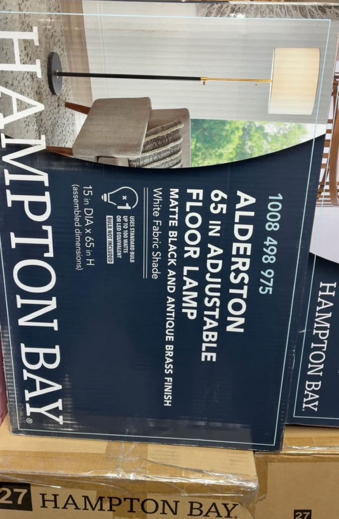 Offer away. I’m willing to work on a price. Will not respond to still available. Hampton Bay Alderston 65 in. Matte Black and Antique Brass Adjustable Standard Floor Lamp