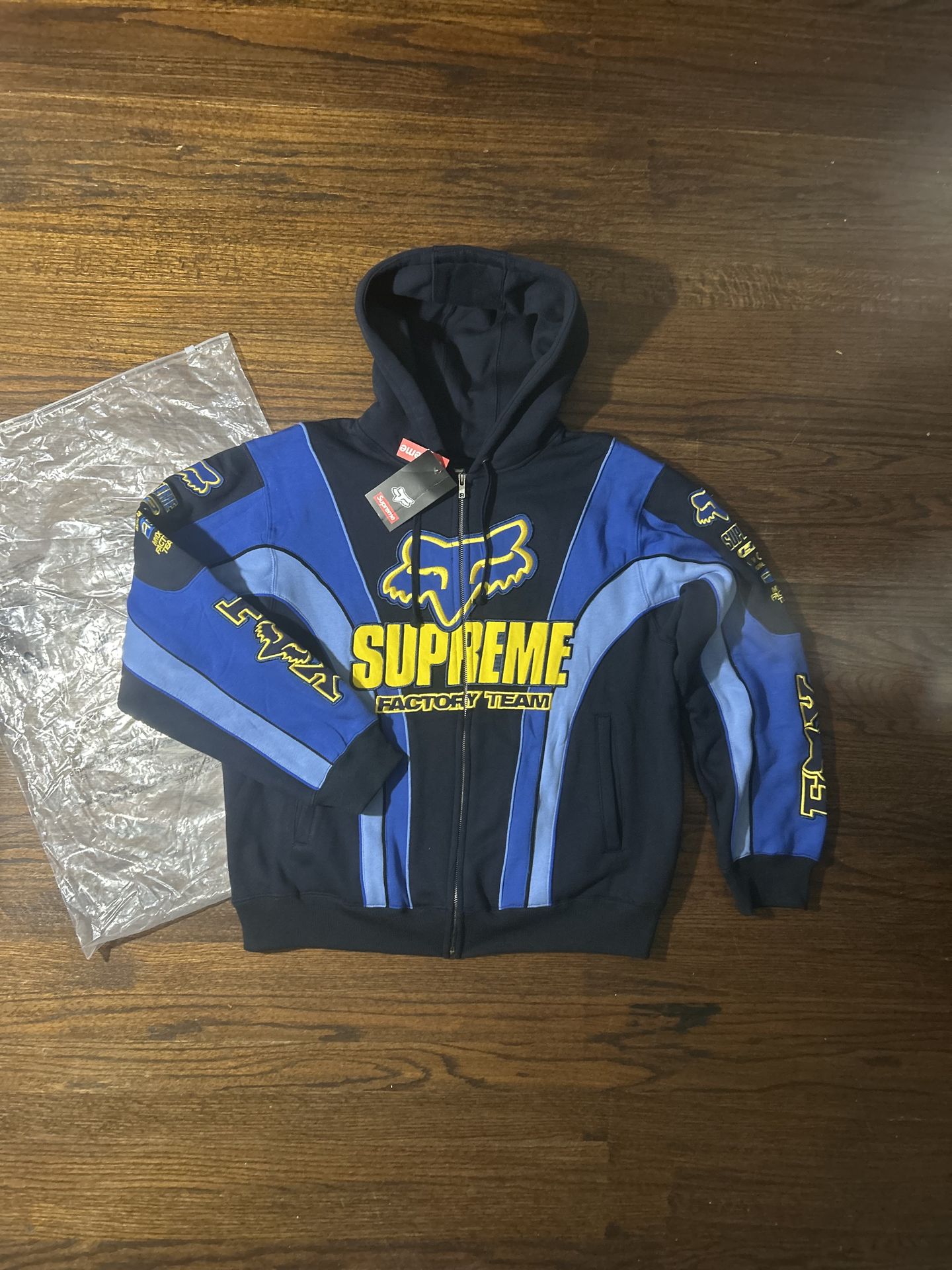 Supreme Fox Racing Zip Up Hooded Sweatshirt Blue