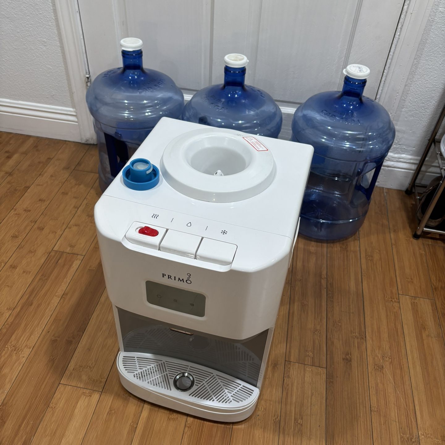 primo water dispenser w/ three water jugs