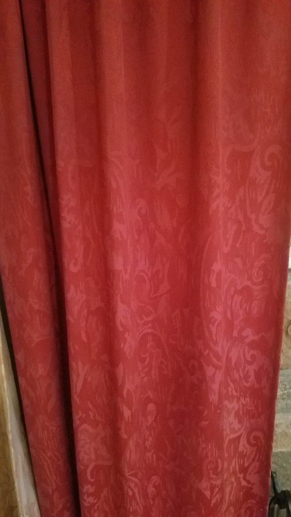 Burgundy curtains, 4 panels, 84 inches long and 29 1/2 inches wide. The hem is over 3 inches in case you need it longer.