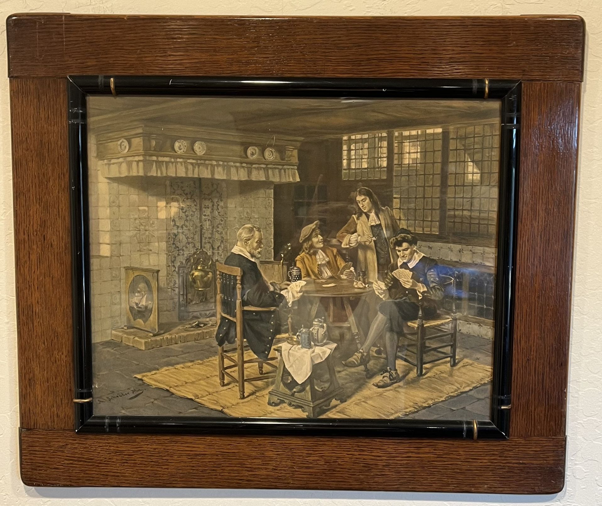 vintage framed replica picture of Albert schroder "Men playing cards" Great for home decor or office or game room Frame 27x 23 inches