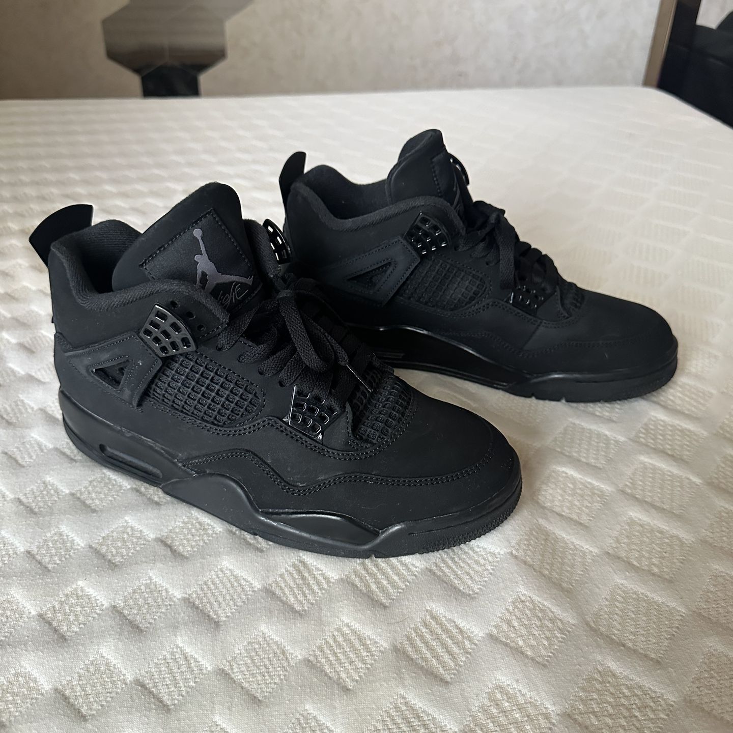 Air Jordan 4 Retro “Black Cat” Men’s Size 9 NO BOX Slightly worn / almost brand new….. only light use, no creases, scuffs, or damage. Asking $200 OBO No trades.