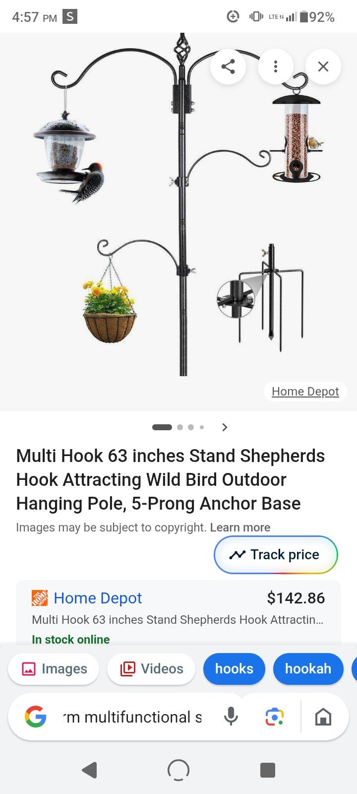 Multi Hook 63 inches Stand Shepherds Hook Attracting Wild Bird Outdoor Hanging Pole, 5-Prong Anchor Base