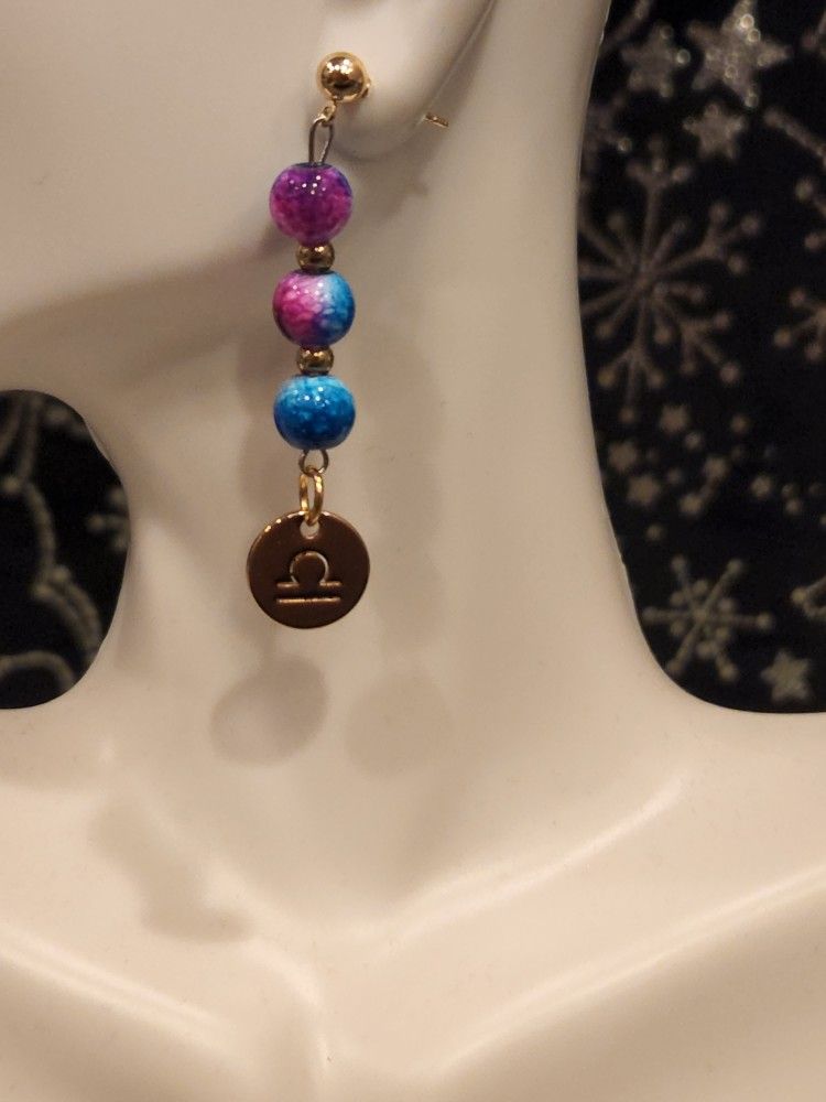 A set of Libra earrings with glass pink and blue beads, the colors of this sign. Made with hypoallergenic materials