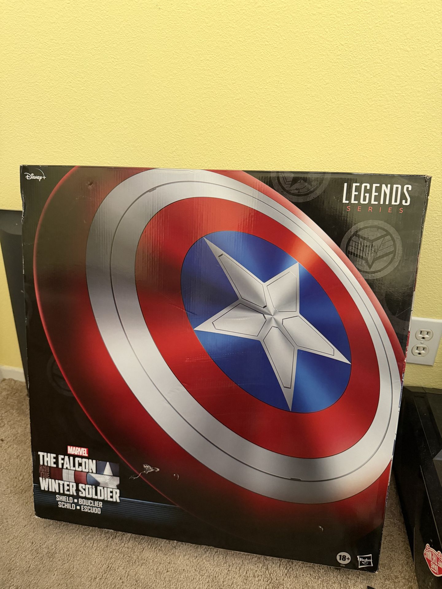 The Hasbro Marvel Legends Series Falcon and Winter Soldier Captain America Premium Role Play Shield is a 1:1 scale (24-inch) prop replica inspired by the Disney+ series