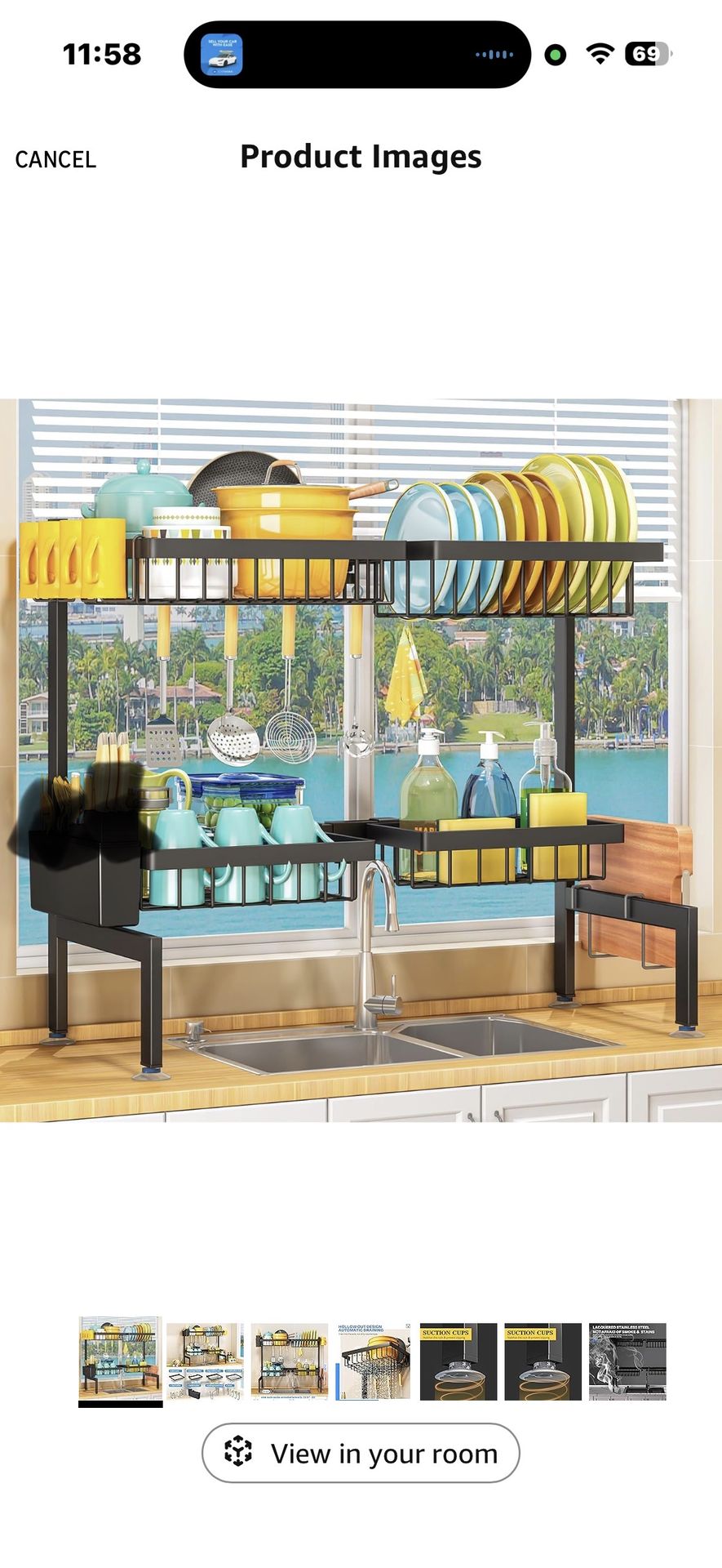 This black 2 tier 24.8”-35.4” over the sink dish drying rack is new. **However they sent a half moon utensil holder & not a square holder for xtra knife separating.(NOT NECESSARY- HALFMOON STILL FUNCTIONAL TO HOLD UTENSILS)See last pic. GOOD QUALITY - Our meticulous approach to material selection guarantees high-quality products, emphasizing our dedication to excellence and customer satisfaction. 【Complete Accessories】1 large cutlery rack, 1 small cutlery rack, 1 dish rack, 1 sponge holder, 1 utensil holder, 1 glass holder, 1 cutting board holder and 5 hooks. 【Easy Installation】Easy to assemble sink rack with product component list and detailed installation instructions, each step at a glance, easy to install products in minutes. 【Size】Rack size: 35.4 "L*12.2" W*20.5 "H, length can be adjusted from 24.8" to 35.4"depending on your needs. Faucet height should be ≤16.1" and cabinet bottom to counter top height should be ≥20.5". 【High Quality Material】Using high quality metal material, ha