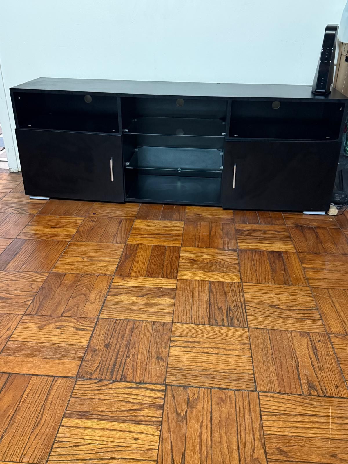 Sleek black TV trolley with a modern design