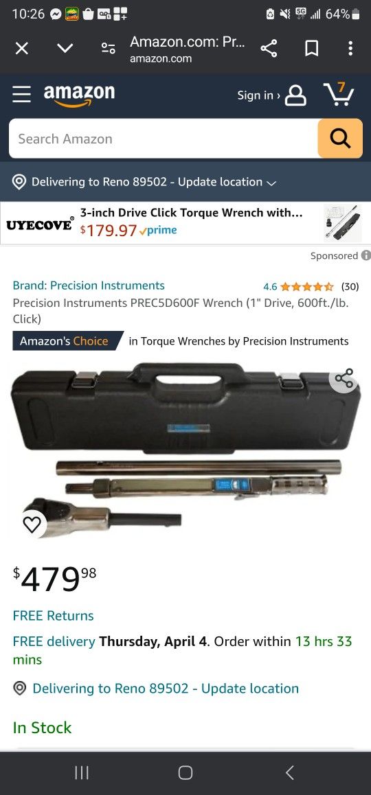 (30) Precision Instruments PREC5D600F Wrench (1" Drive, 600ft./lb. Click)