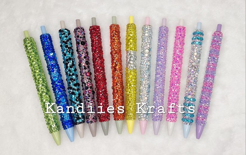 12 Handcrafted sparkling bling pens!!! Now officially at Kandiies Krafts. β¨οΈπͺ©ππ¦β€οΈβπ₯π