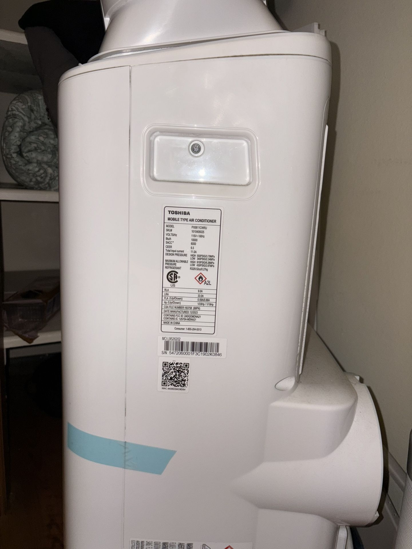 Toshiba 6,000 BTU Window AC – Wi-Fi Enabled (PX0611CWRU) Great working condition. Cools up to ~250 sq. ft. Quiet, energy-efficient, and easy to install. Wi-Fi capable—control from your phone. Clean and well-maintained, smoke-free home.
