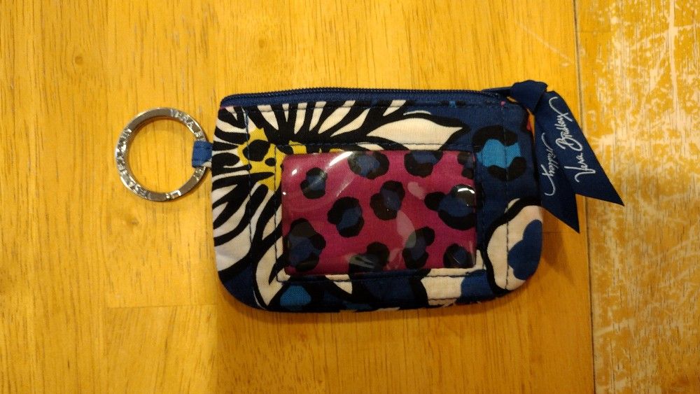 This Vera Bradley Coin Purse in African Violet has a zip closure and an outer clear pouch for your License.