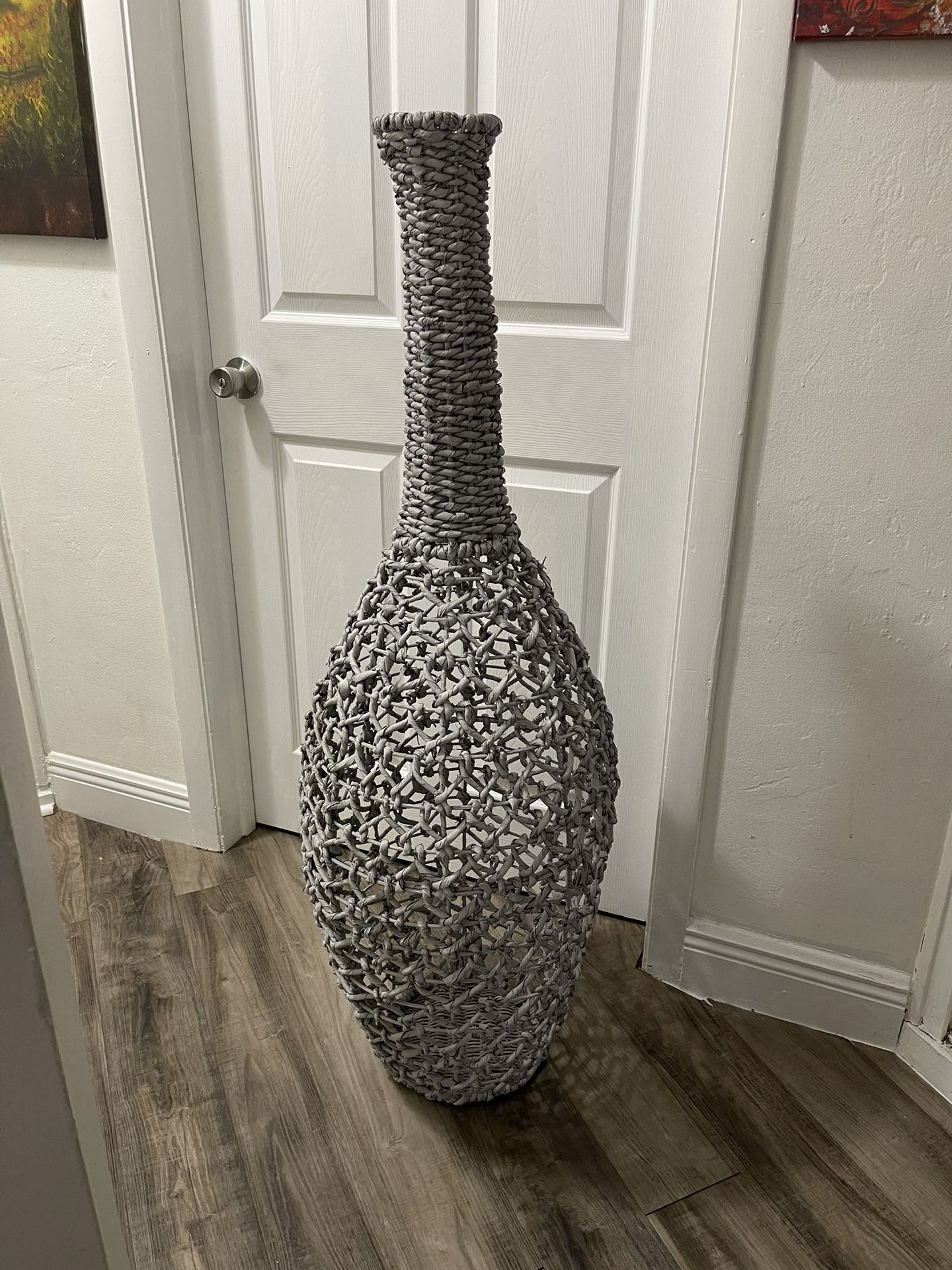 Woven Rattan Floor Vase 48”H X 16”W (Gray Color) In Good Condition $70 Firm On Price