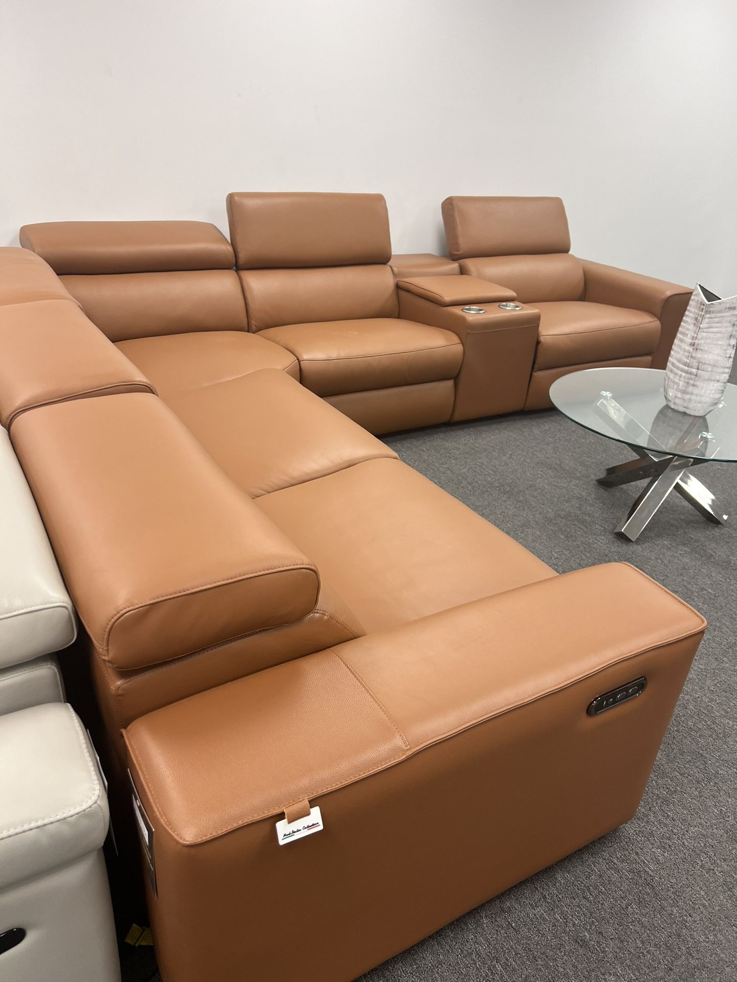 Brand New! 7pcs Caramel Genuine Italian Leather Sectional! Same Day Delivery