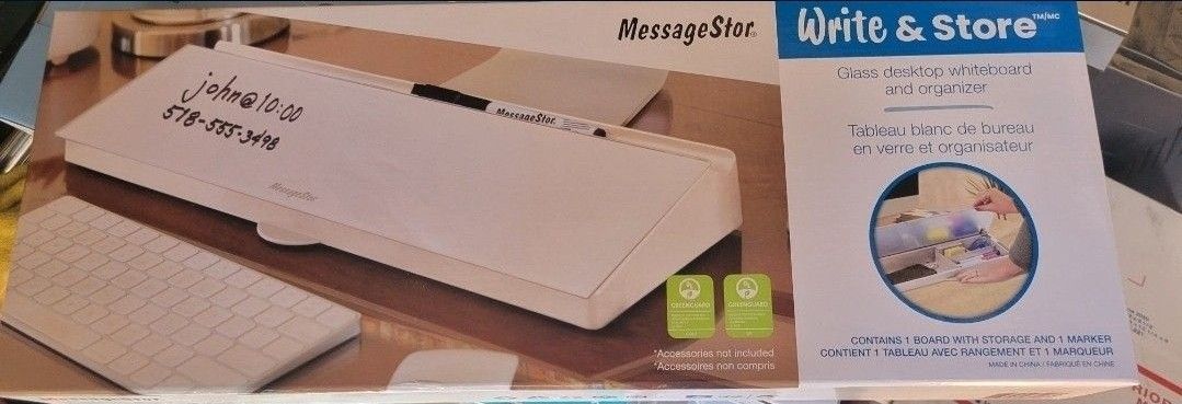 New Keyboard Write and Store, 18in x 6.5in Computer Pad, Magnetic Glass Dry-Erase Surface, Whiteboard Desktop Memo Pad with Accessory Storage and Built-in Phone Charger Organizer - White