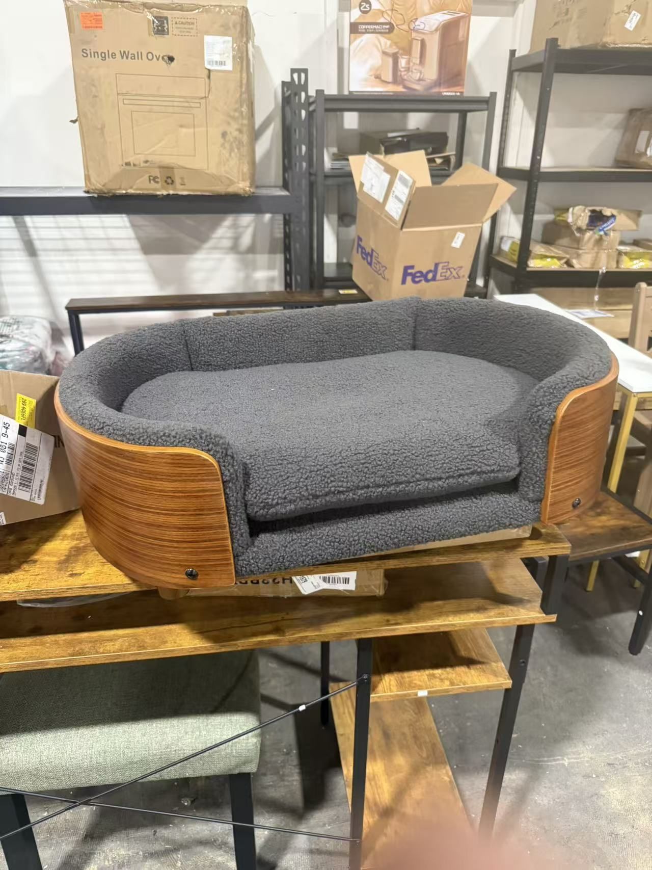Elevated Pet Sofa Bed with Solid Wood Legs, Bent Wood Back, and Cashmere Cushion - Luxury Pet Furniture for Cats and Dogs, Dark Gray & Walnut$$80
