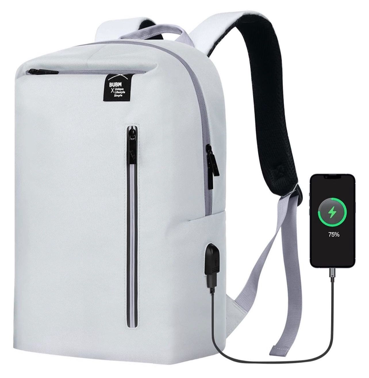 PRACTICAL SPACE USB PORT: There is a USB charging port on the right side of the backpack and a separate USB charging cable inside, you just need to connect the mobile power to the USB port COMFORTABLE DESIGN WATERPROOF DURABLE MATERIAL: the backpack is made of waterproof fabric polyester and durable metal zipper to ensure the safe and long-lasting use of the backpack every day and weekend. SIMPLE AND STYLISH